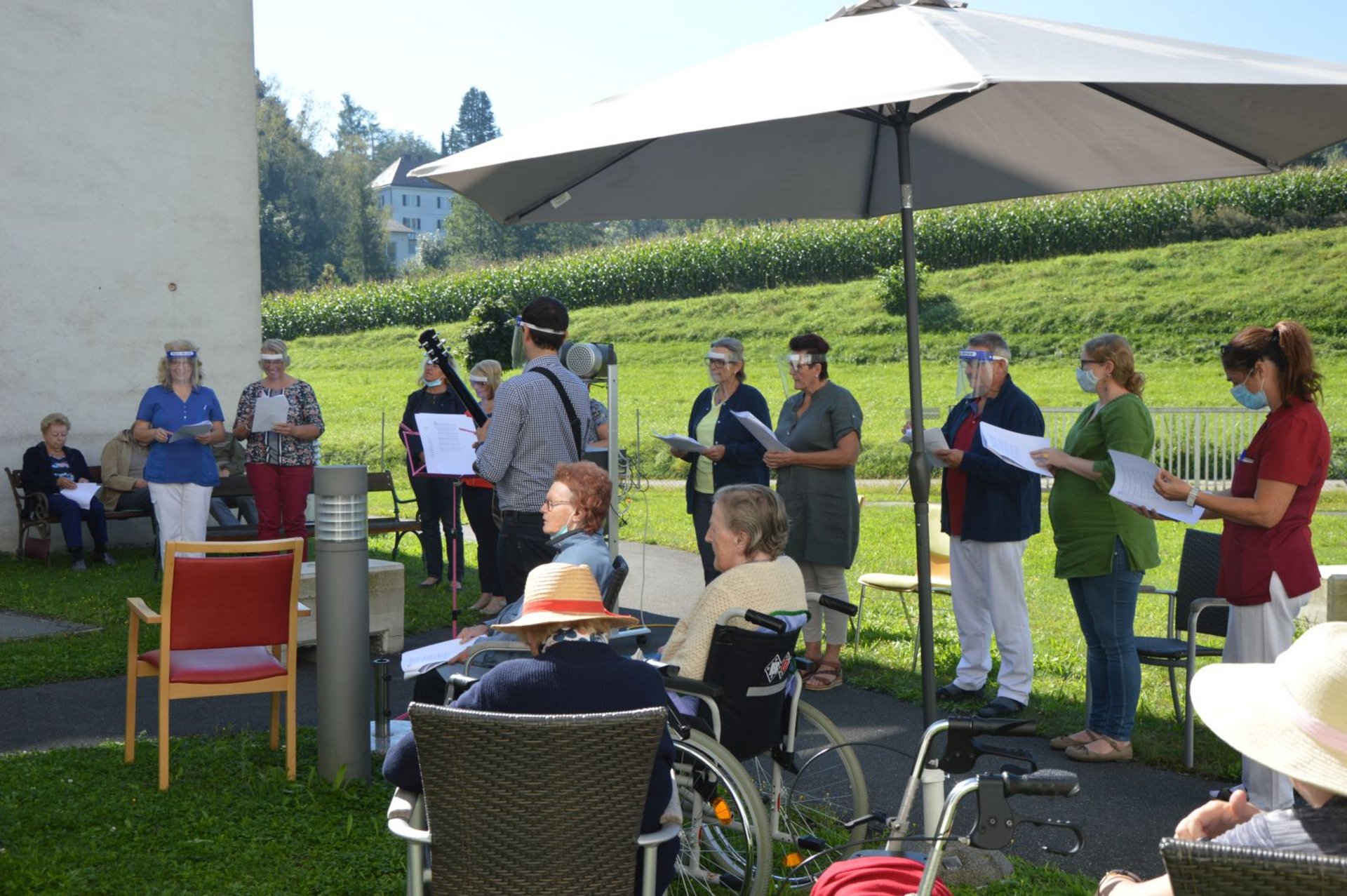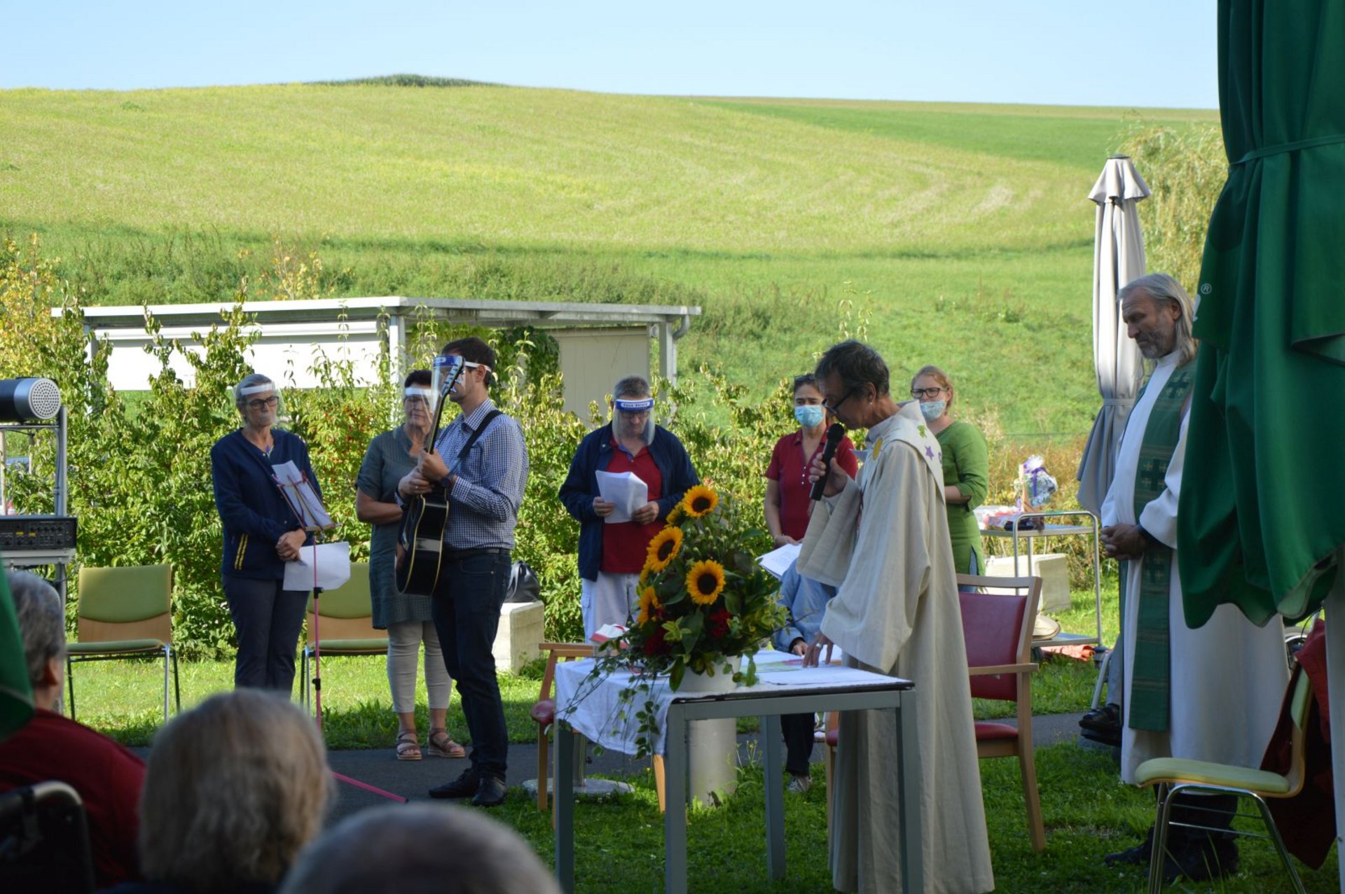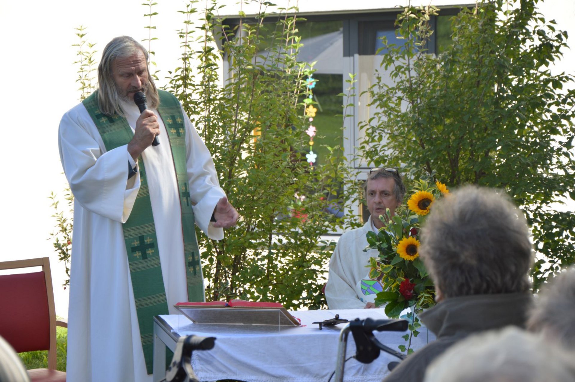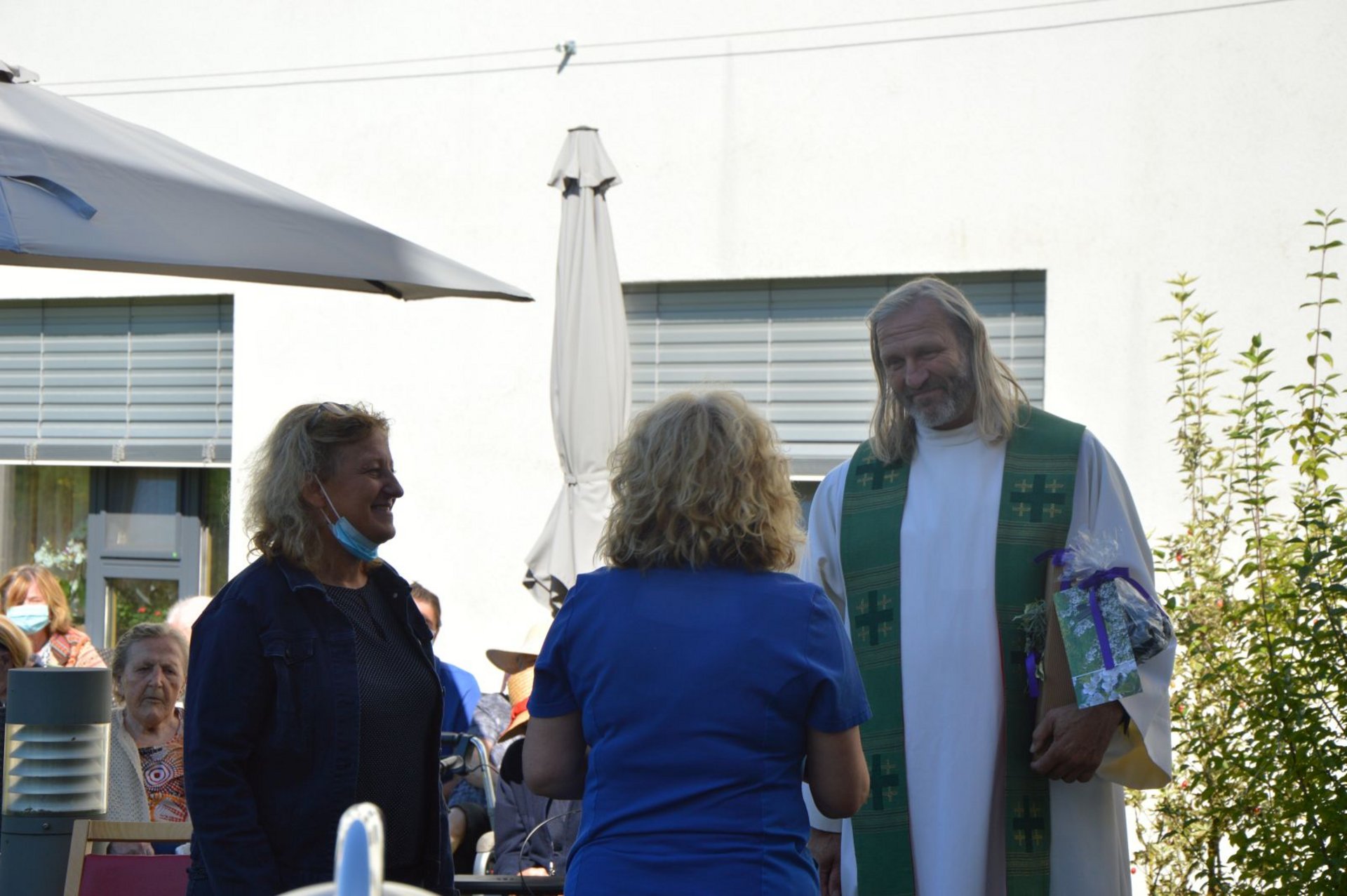 Anlässlich des Abschiedes unseres Pfarrers Johann Wurzer, wurde bei einem herrlichen Spätsommertag eine Singmesse im Garten gefeiert. Die Hl. Messe wurde von unserem Schwesternchor feierlich gestaltet. Als Dank für die jahrelange Seelsorge in unserem Haus wurde von Frau Dir. Gertrude Bauernfried ein Geschenk überreicht. Die nächste Bewohnerwallfahrt führt uns bereits nach Opponitz. Wir wünschen Ihm für seine neue Lebensaufgabe in der Gemeinde Opponitz alles Gute!