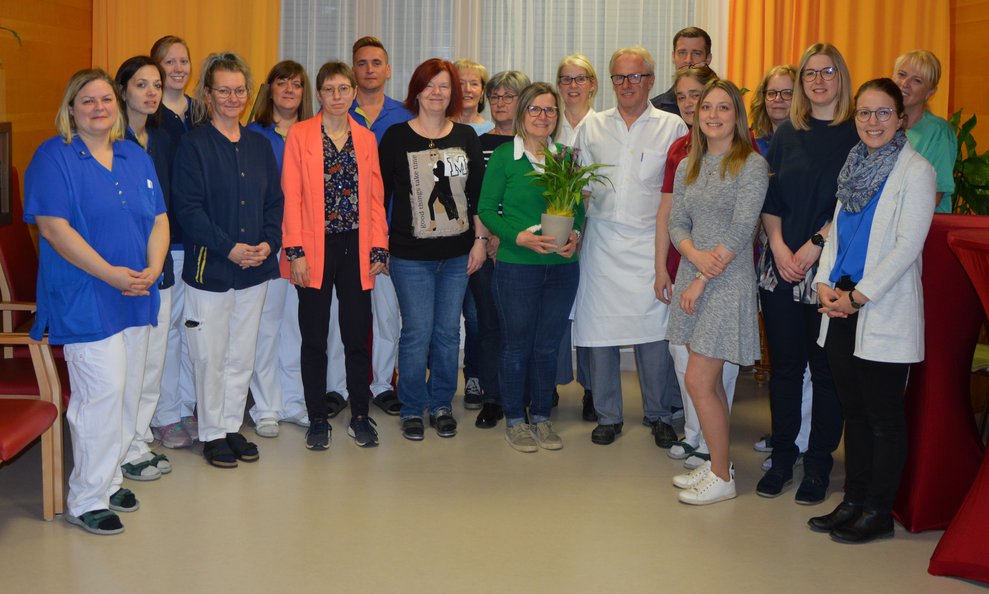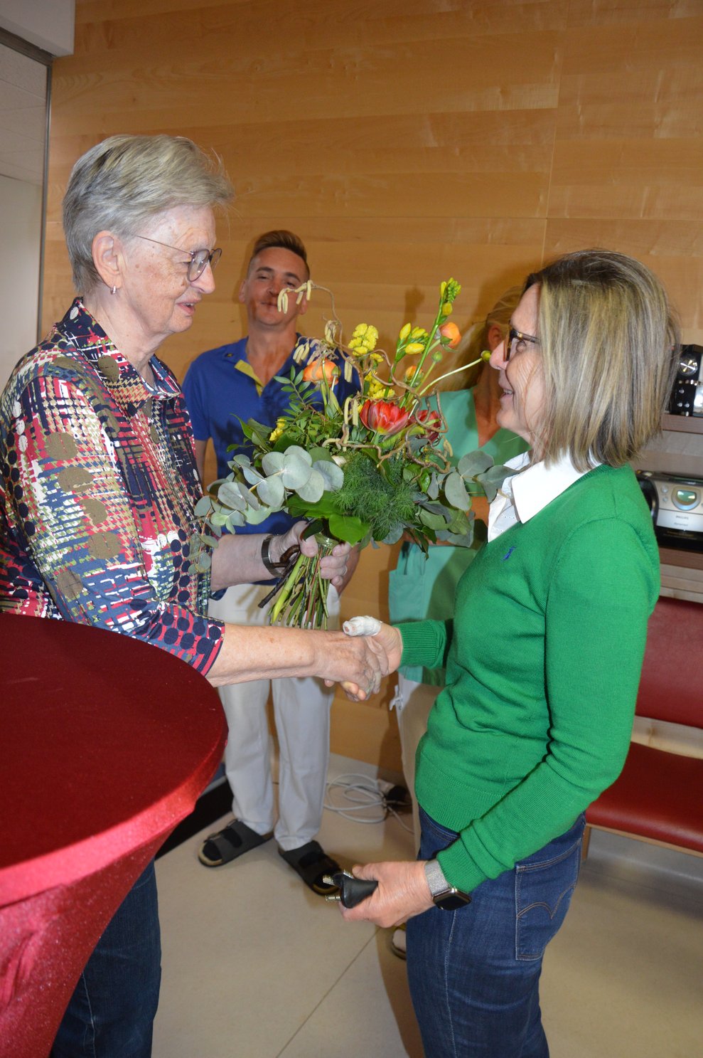 Mit zahlreichen Glückwünschen und lustigen Anekdoten durften bzw. mussten wir unsere Eveline Kurzmann in den wohlverdienten Ruhestand verabschieden. Als stets verlässliche, hilfsbereite und langjährige Kollegin hat sie im Verwaltungsbereich mit Motivation und Freude gearbeitet und war für das gesamte Haus eine Bereicherung. Die gute Zusammenarbeit mit allen Fachbereichen des PBZ war ihr sehr wichtig und sie wurde dafür sehr geschätzt. Auch von den BewohnerInnen und Angehörigen kamen stets lobende Worte. Liebe Eveline, wir wünschen dir für den neuen Lebensabschnitt alles Gute, viel Glück und Gesundheit!