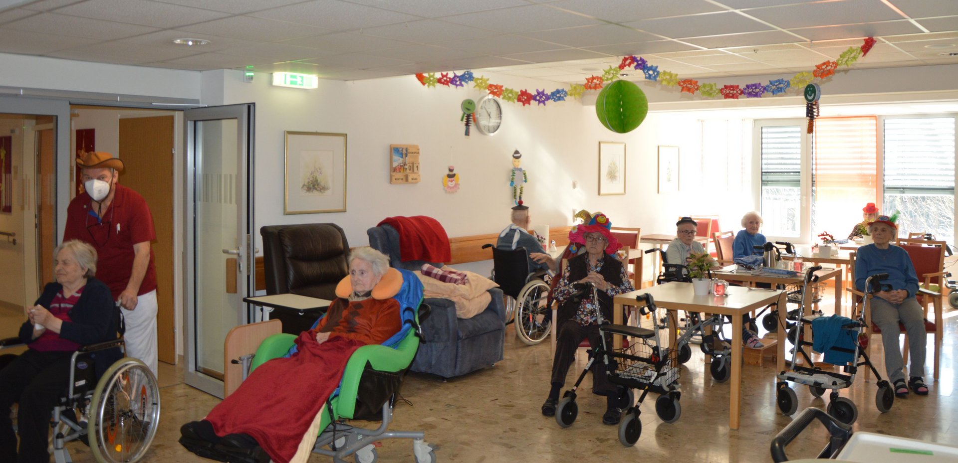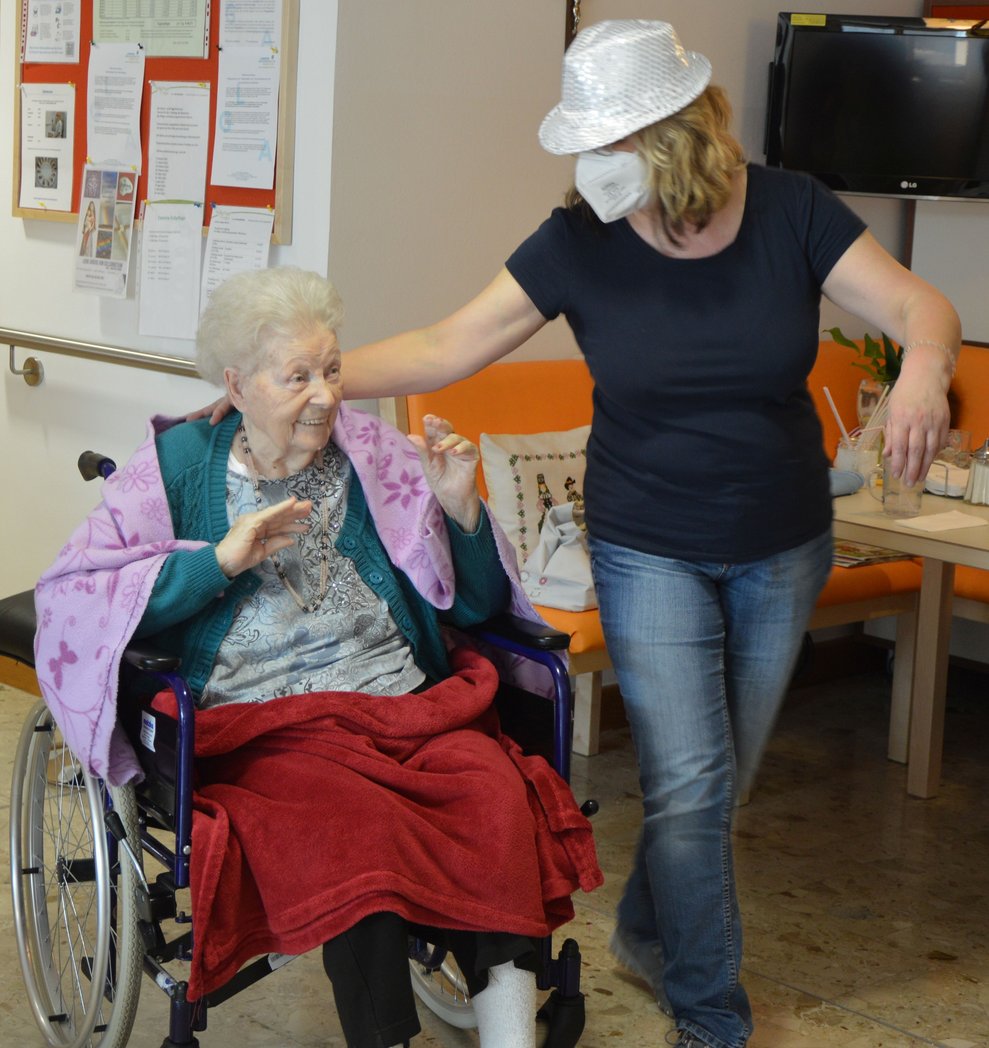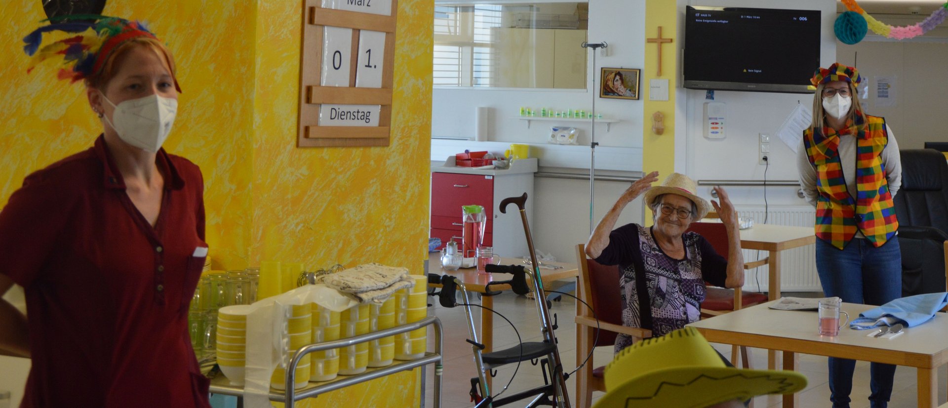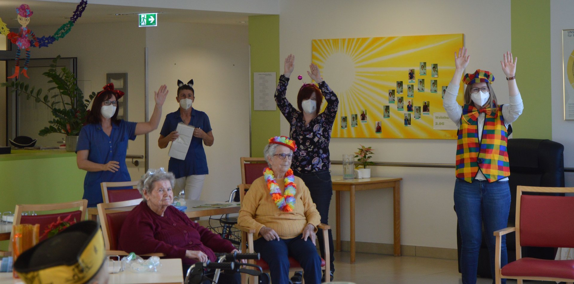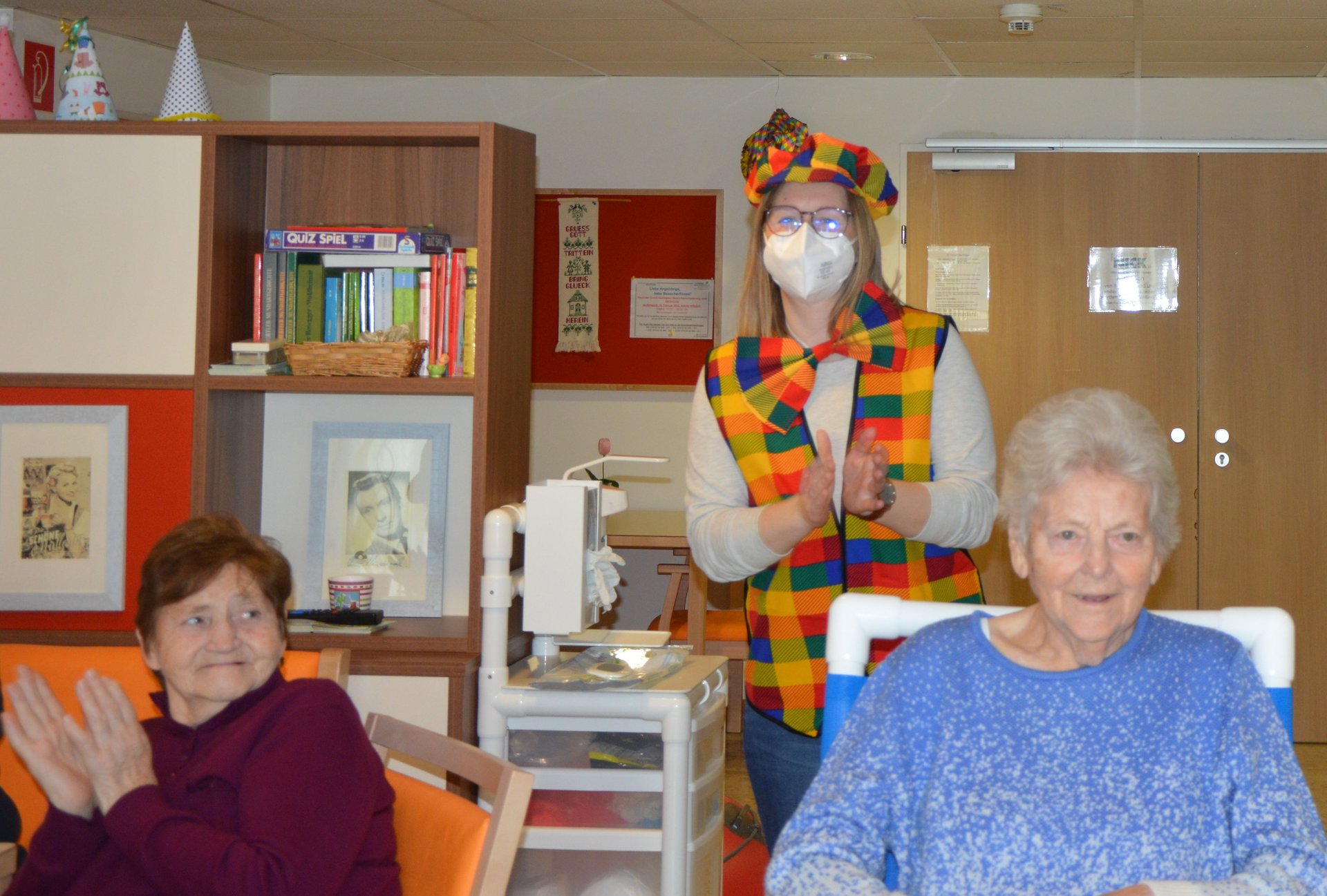 Trotz Corona wurde ein kurzes Faschingsprogramm auf jedem Wohnbereich mit den Bewohnerinnen und Bewohner gefeiert. Unsere Alltagsbegleiterinnen Gabi und Elisabeth mit Unterstützung der Praktikantinnen schafften es, wieder eine Abwechslung in den Alltag zu bringen. Die BewohnerInnen hatten dabei riesigen Spaß und am nächsten Tag wurde noch darüber gesprochen.