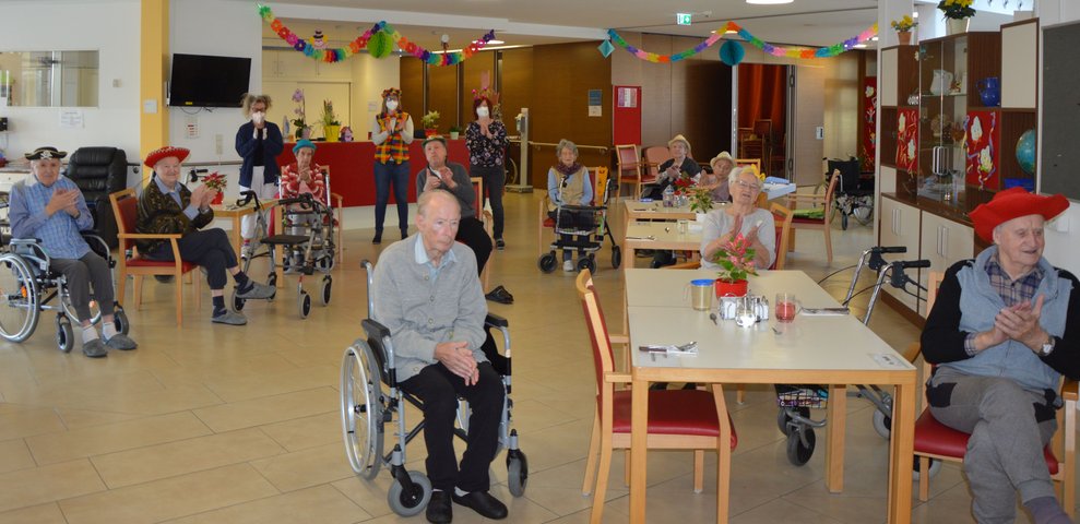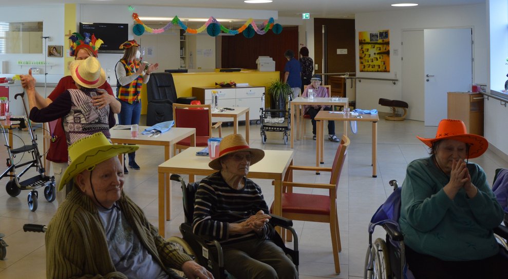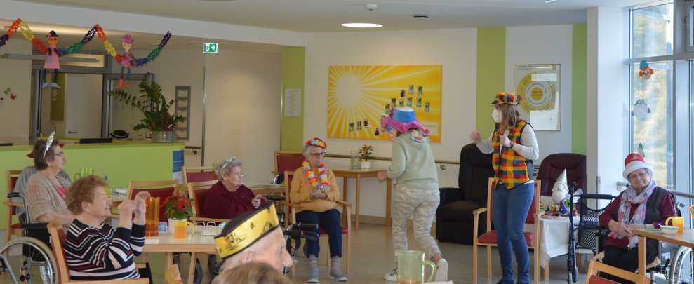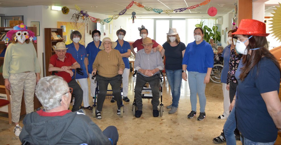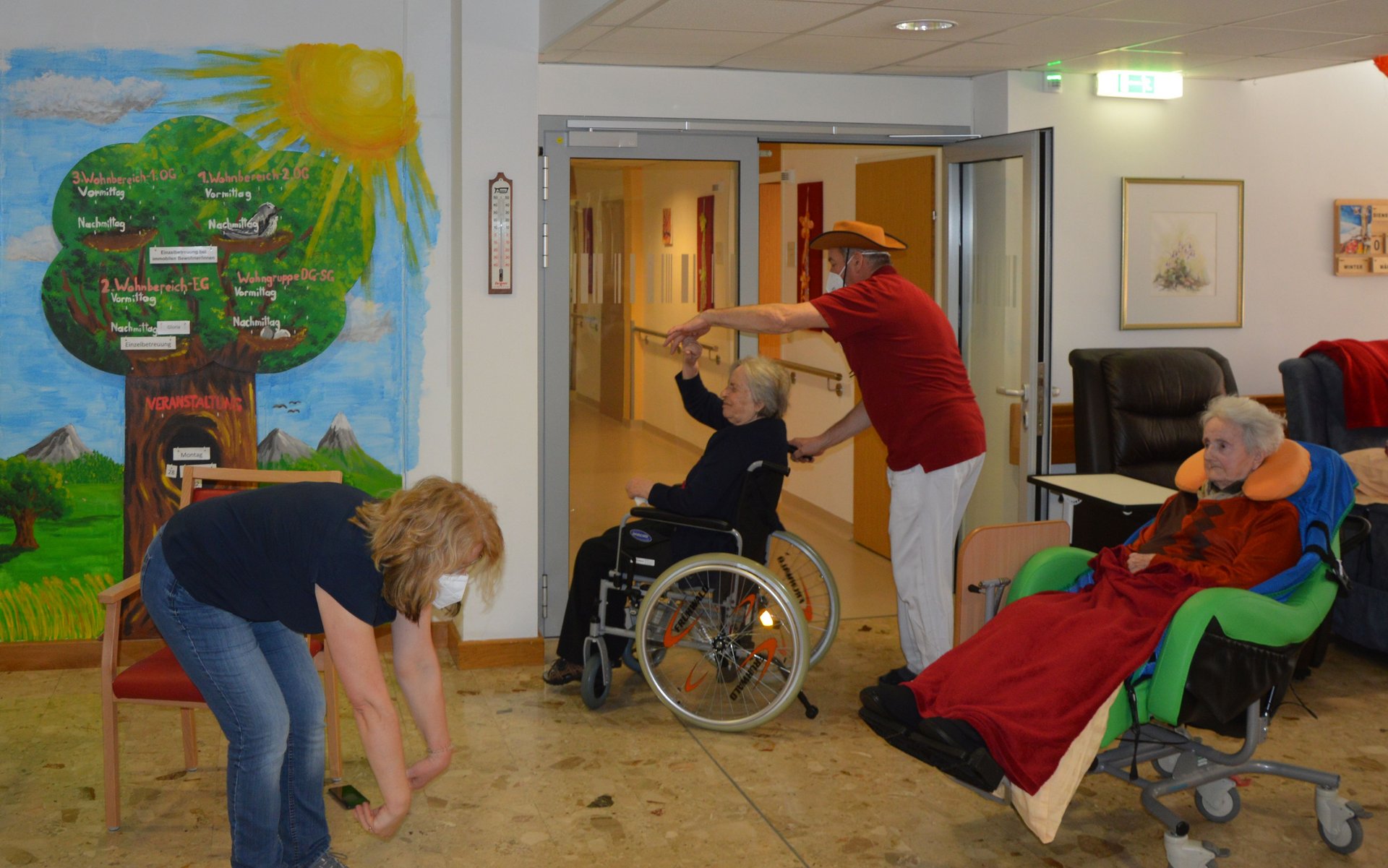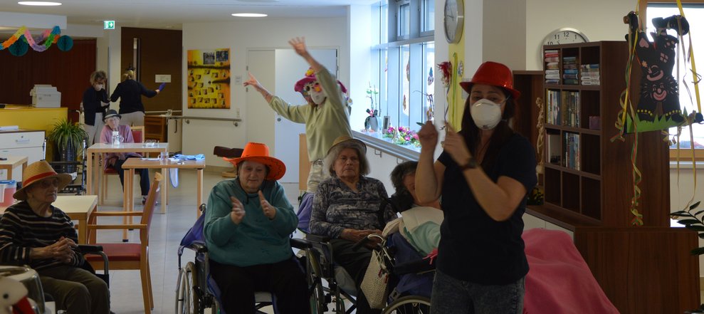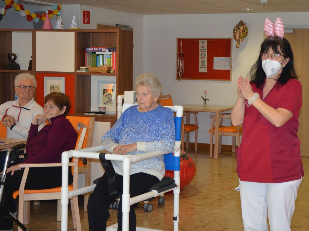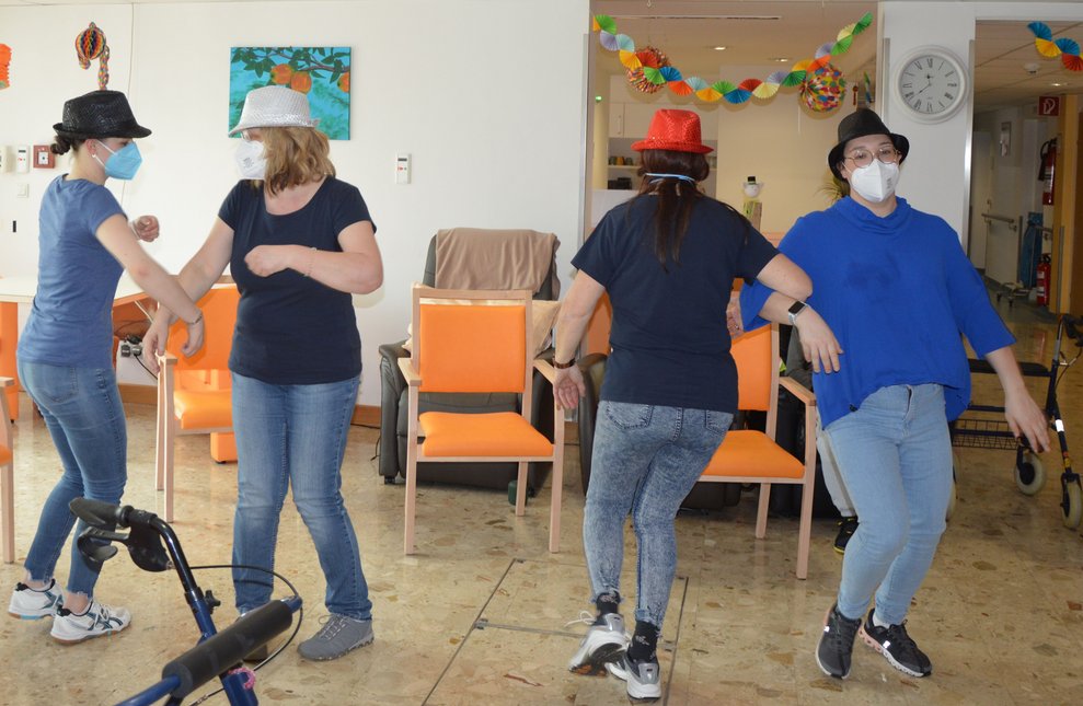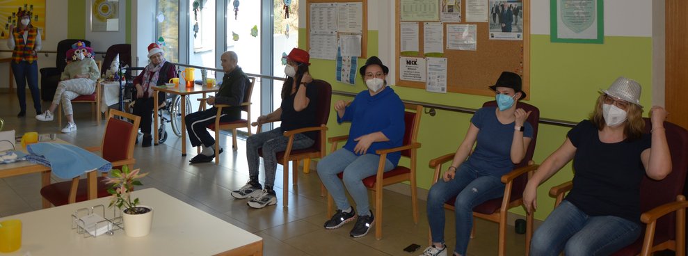 Trotz Corona wurde ein kurzes Faschingsprogramm auf jedem Wohnbereich mit den Bewohnerinnen und Bewohner gefeiert. Unsere Alltagsbegleiterinnen Gabi und Elisabeth mit Unterstützung der Praktikantinnen schafften es, wieder eine Abwechslung in den Alltag zu bringen. Die BewohnerInnen hatten dabei riesigen Spaß und am nächsten Tag wurde noch darüber gesprochen.