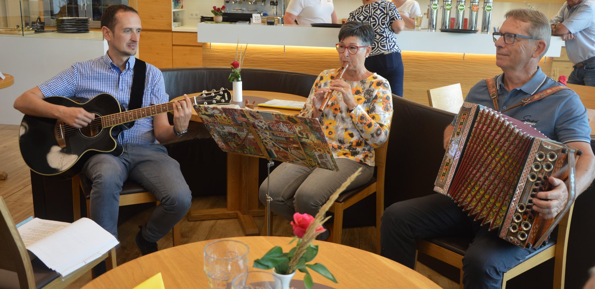 Unser diesjähriger Ausflug mit unseren Bewohnerinnen und Bewohnern führte uns in die Bauernkrapfen-Schleiferei nach Tragwein. Dort erwartete uns neben einer kurzen geschichtlichen Einführung, eine tolle Bewirtung und köstliches Essen. Die Bewohnerinnen und Bewohner konnten den BäckerInnen vor Ort beim Bauernkrapfen-backen über die Schultern schauen und im Anschluss verschiedenste Varianten (süß oder pikant) verkosten. Auch die zubereitete Hausmannskost war vorzüglich. Zur Musik von Fam. Wagesreiter und Eder Christian wurde gesungen und geschunkelt. Ein wirklich gelungener Ausflug!