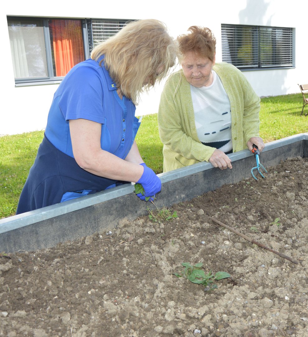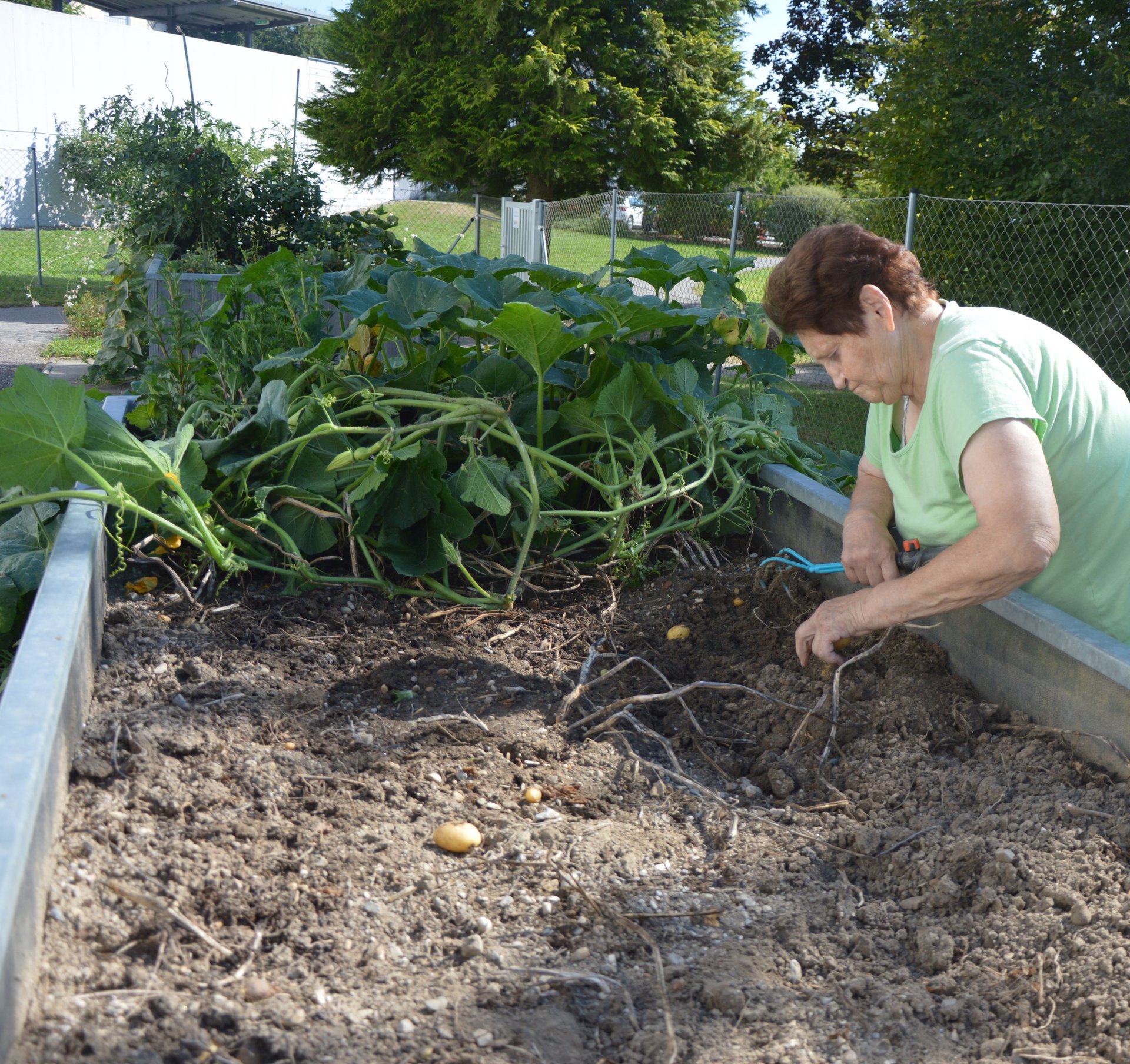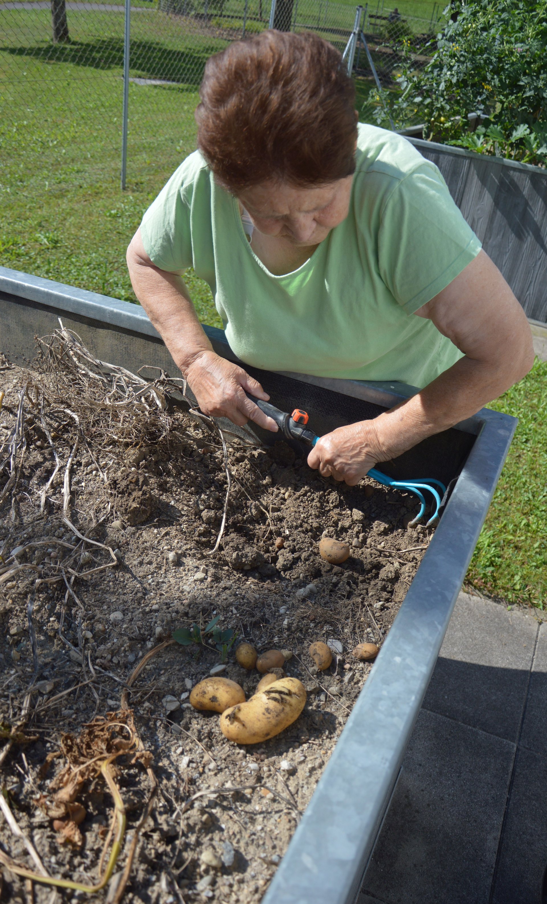 Ende April, wurden Kartoffeln gesetzt, über das Jahr gepflegt und gegossen bis es so weit war und wir unsere Kartoffeln aus dem Projekt "Kartoffelpyramide" ernten konnten. Die Bewohner*innen waren mit vollem Einsatz und Eifer dabei. Voller Begeisterung konnte am Ende der Arbeit die Ernte bewundert werden, in der auseigenen Küche werden die Kartoffel verkocht.