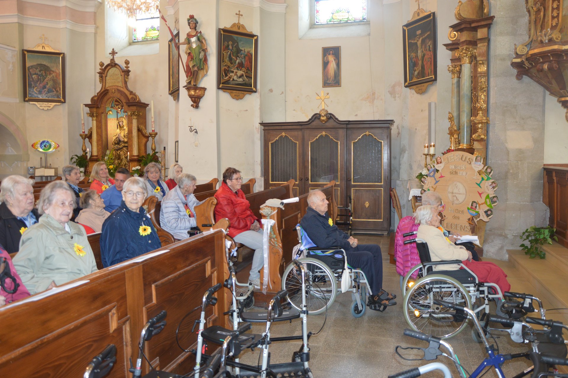 Die diesjährige Wallfahrt ging nach Kollmitzberg, wo wir gemeinsam mit dem Ybbser Pfarrer Reitzinger und Diakon Poschenreithner die Hl. Messe feierten. Musikalisch wurde die Messe gemeinsam mit dem Ehepaar Wagesreiter, Eder Chrisitian und dem Schwesternchor des Hauses gestaltet. Nach der Hl. Messe gab es ein gemeinsames Mittagessen im Gasthof Alpenblick. Die Bewohner und Bewohnerinnen liesen gemeinsam mit unseren Kollegen, Kolleginnen vom Haus und unseren ehrenamtlichen Mitarbeiter und Mitarbeiterinnen den Tag gemütlich ausklingen.