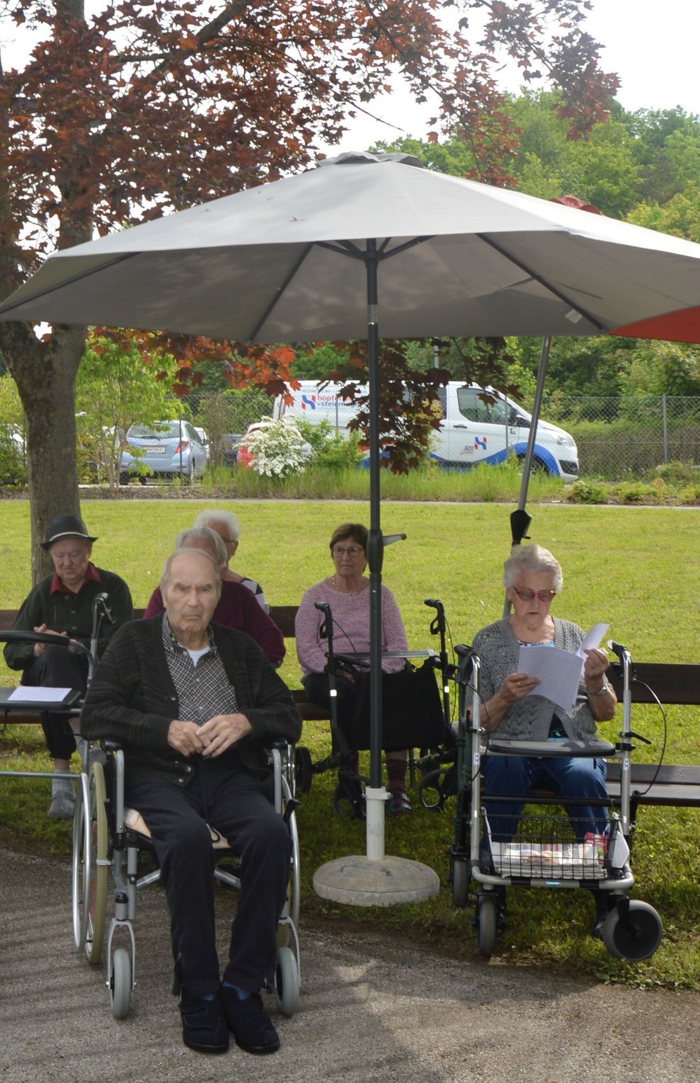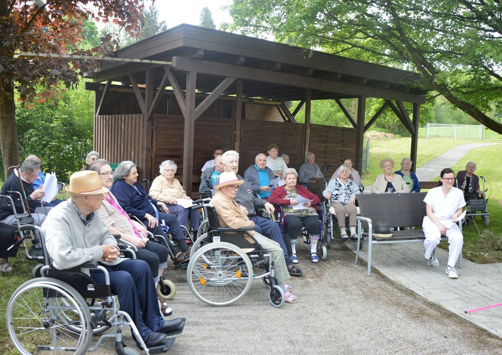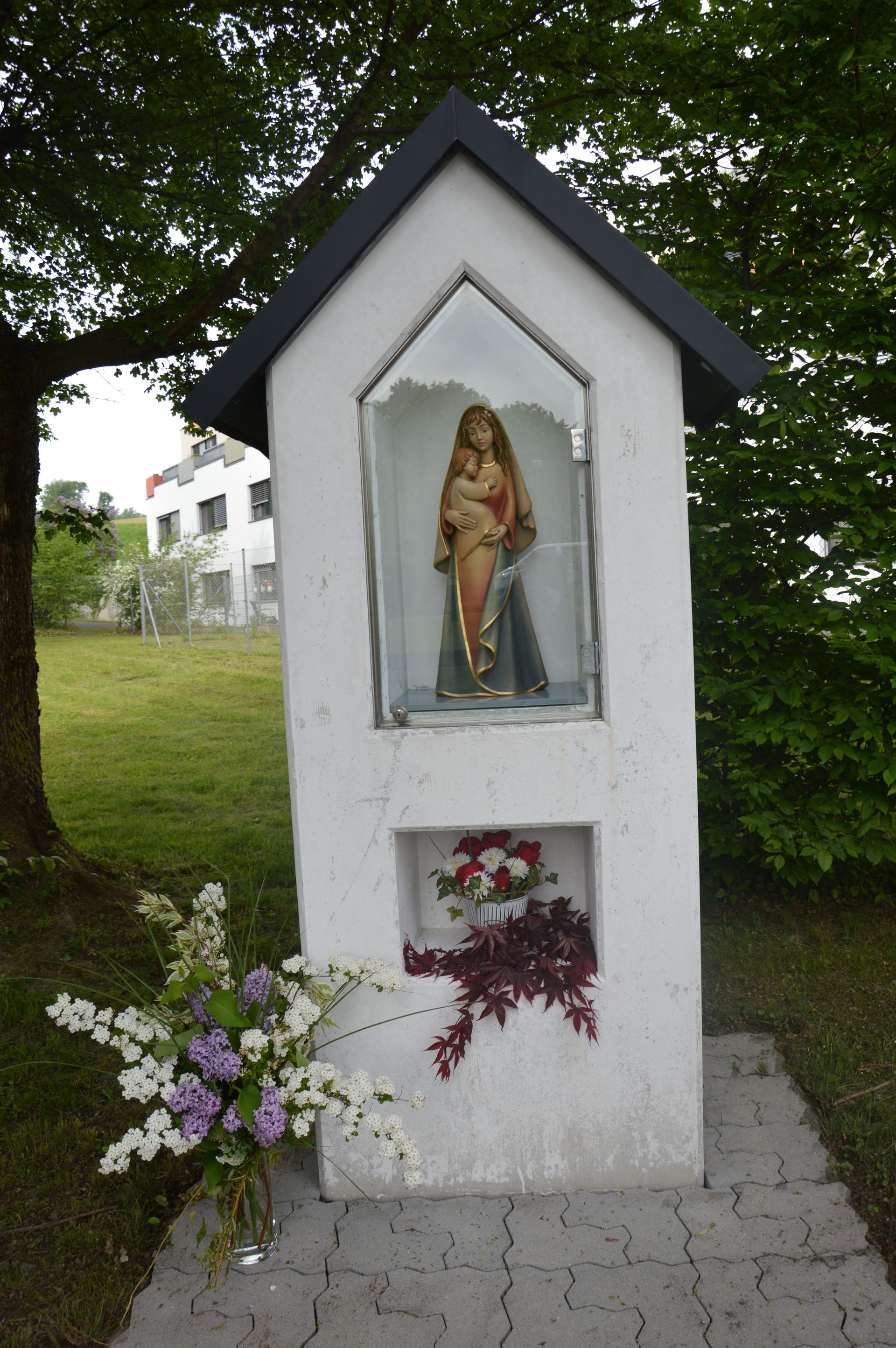 Im Garten beim Marterl fand eine Maiandacht mit Diakon Josef Poschenreithner statt. Musikalisch umrahmten Sie Mitarbeiterinnen mit Ihren Instrumenten der Gitarre und der Ziehharmonika.