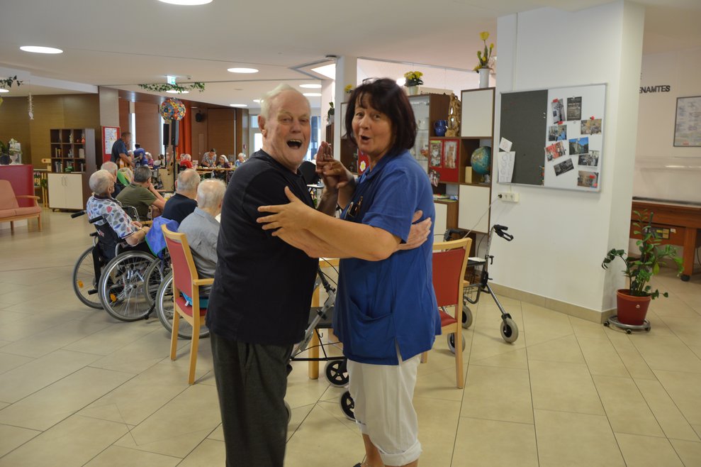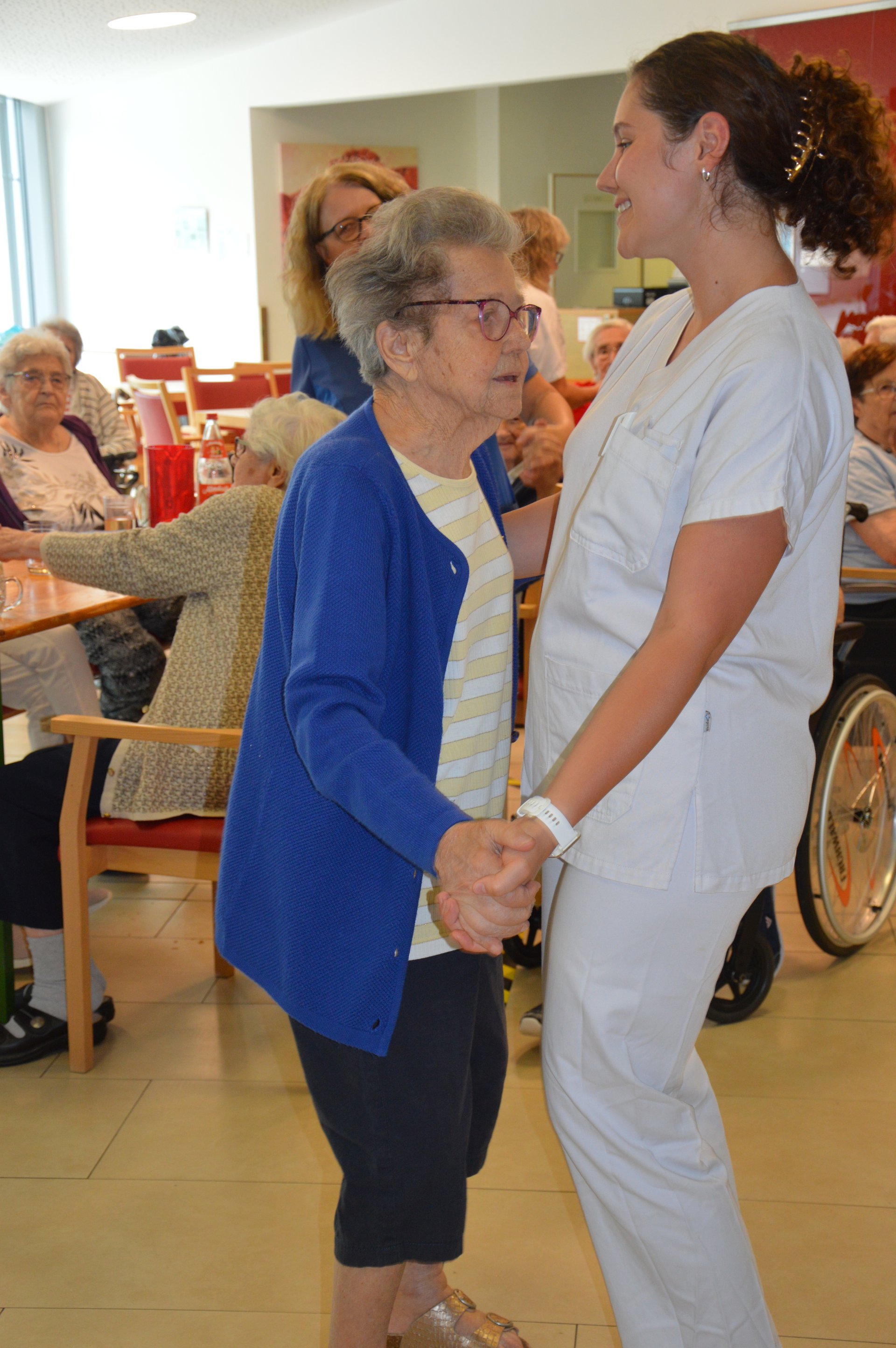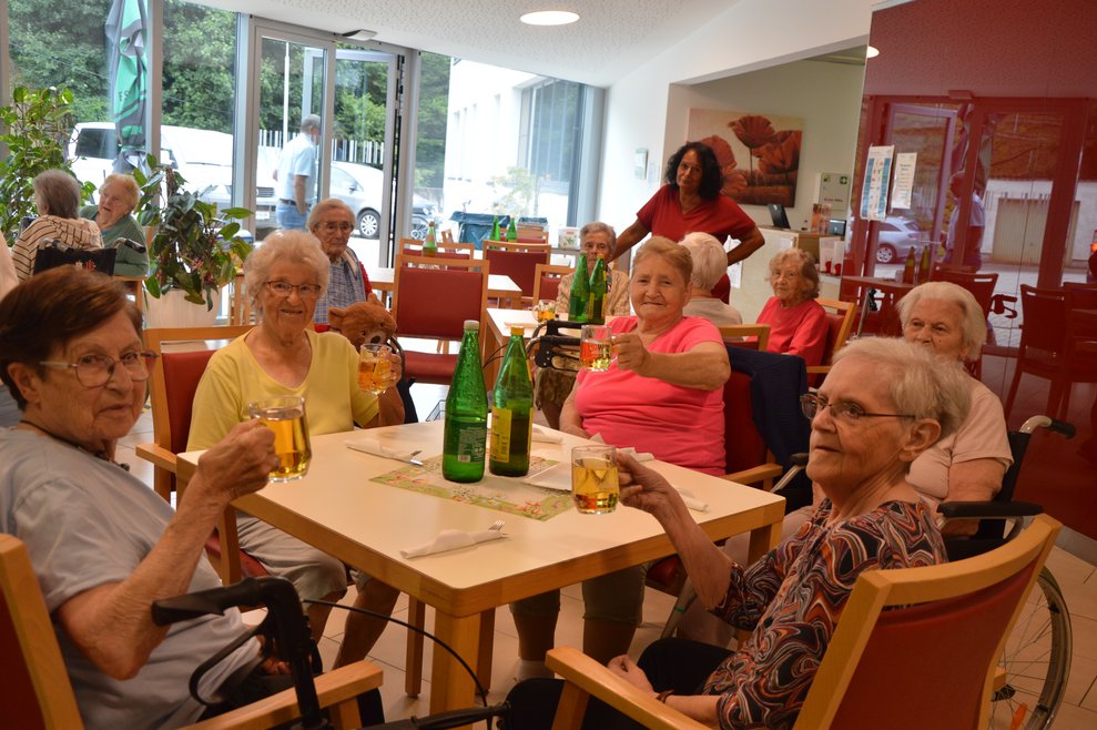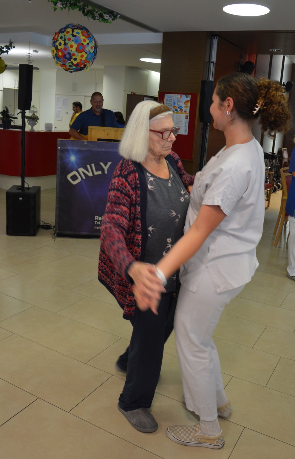 Da der Sommer eine kurze Pause einlegte, fand unser Mittagsgrill heuer im Veranstaltungsbereich statt – was der Stimmung aber nicht geschadet hat. Aufgrund unserer Glasfront in der Cafeteria konnte trotzdem das „Show-Cooking“ stattfinden und unsere Bewohnerinnen und Bewohner konnten den Kolleginnen und dem Kollegen aus der Küche beim Grillen zu schauen. Die Grillwürstel und Fleischlaibchen vom Grill haben wieder sehr gemundet. Als krönenden kulinarischen Abschluss gab es noch ein Eis. Musikalisch wurde der Mittagsgrill von Kugelgruber Reinhard begleitet. Er spielte die alten Klassiker, was natürlich unseren Bewohnerinnen und Bewohner sehr gefiel. Es wurde geschunkelt, getanzt und fleißig mitgesungen. Somit war auch heuer wieder unser Mittagesgrill ein voller Erfolg!
