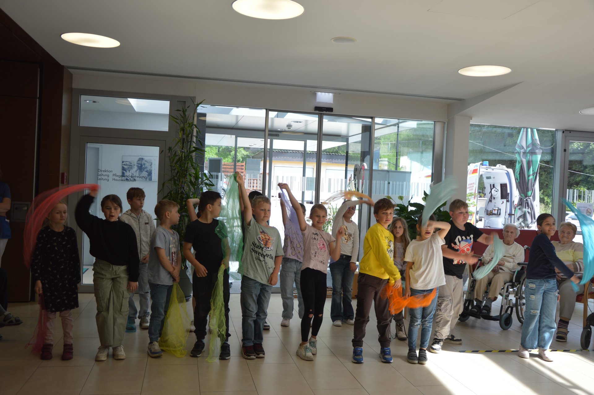 Zu Beginn hatte unsere Bewohnerin einen großen Auftritt, sie trug ein Gedicht über den Lauf des Lebens vor. Neben Tanzvorführungen und Gesangsdarbietungen von den Kindern der Volksschule Ybbs wurden auch Gedichte vorgelesen. Der Besuch hat uns allen sehr viel Freude bereitet!
