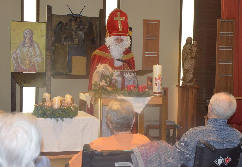 Auch dieses Jahr besuchte uns der Nikolaus. Wir feierten mit Ihm die Hl. Messe und er besuchte die verschiedenen Wohnbereiche bzw. die Zimmer und überreichte einen Schokonikolaus. So entstanden zwischen den Bewohner und Bewohnerinnen und dem Nikolaus so manch nettes Gespräch.