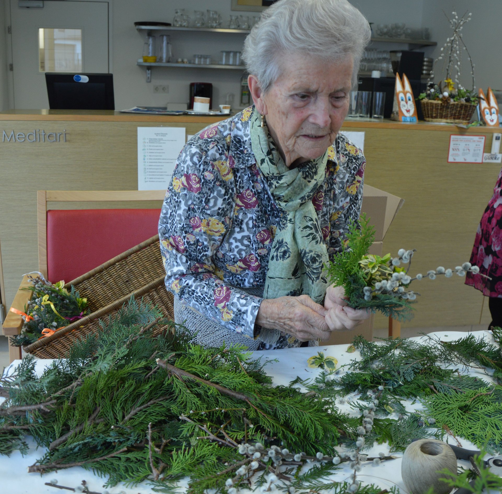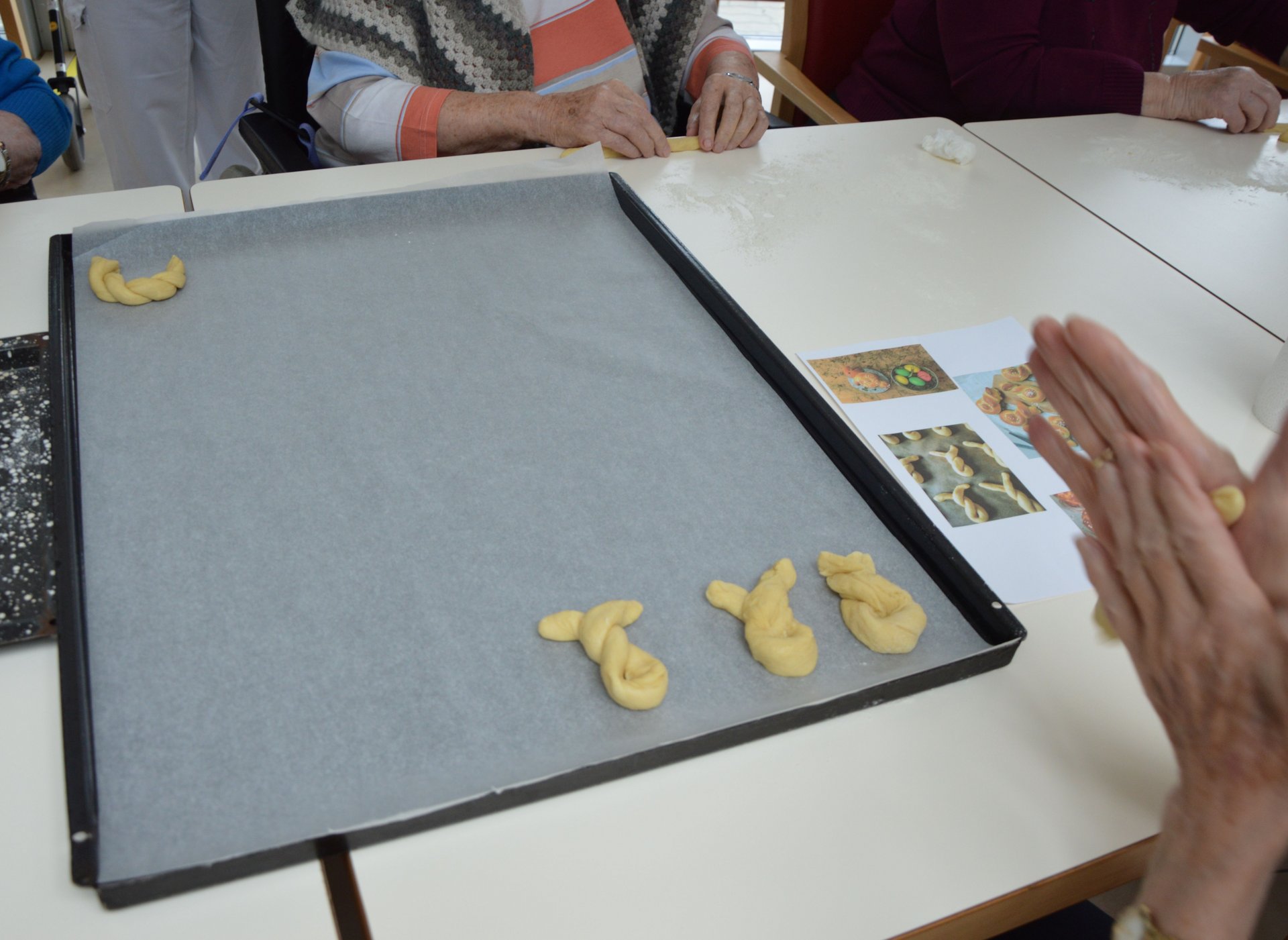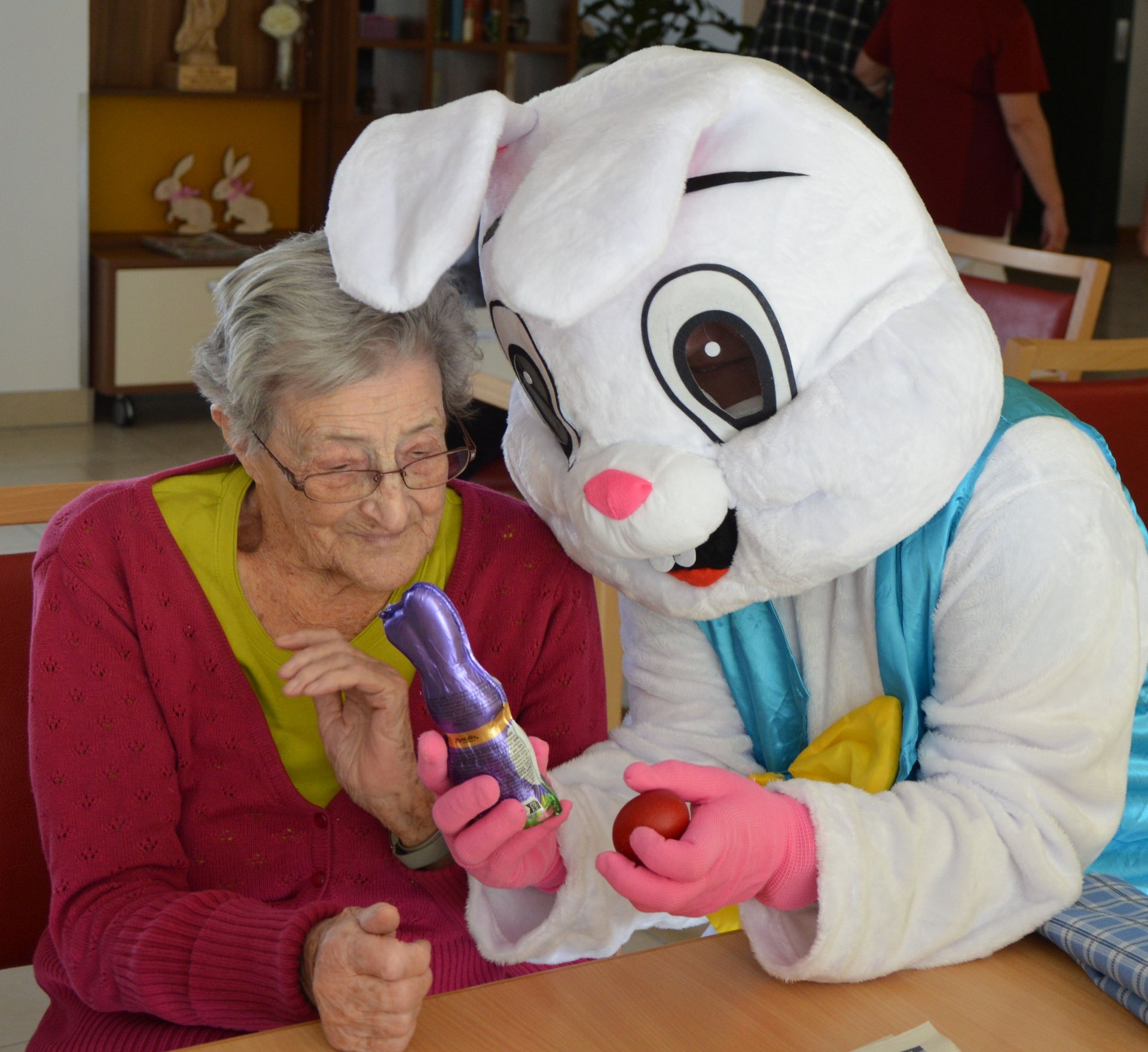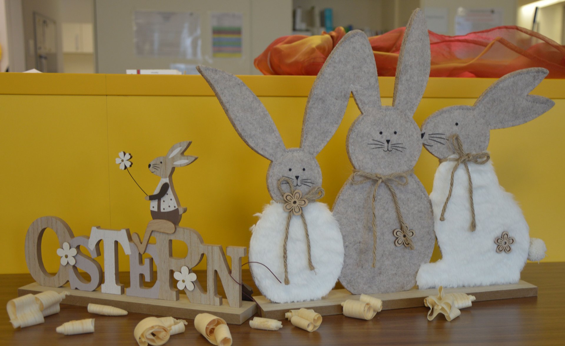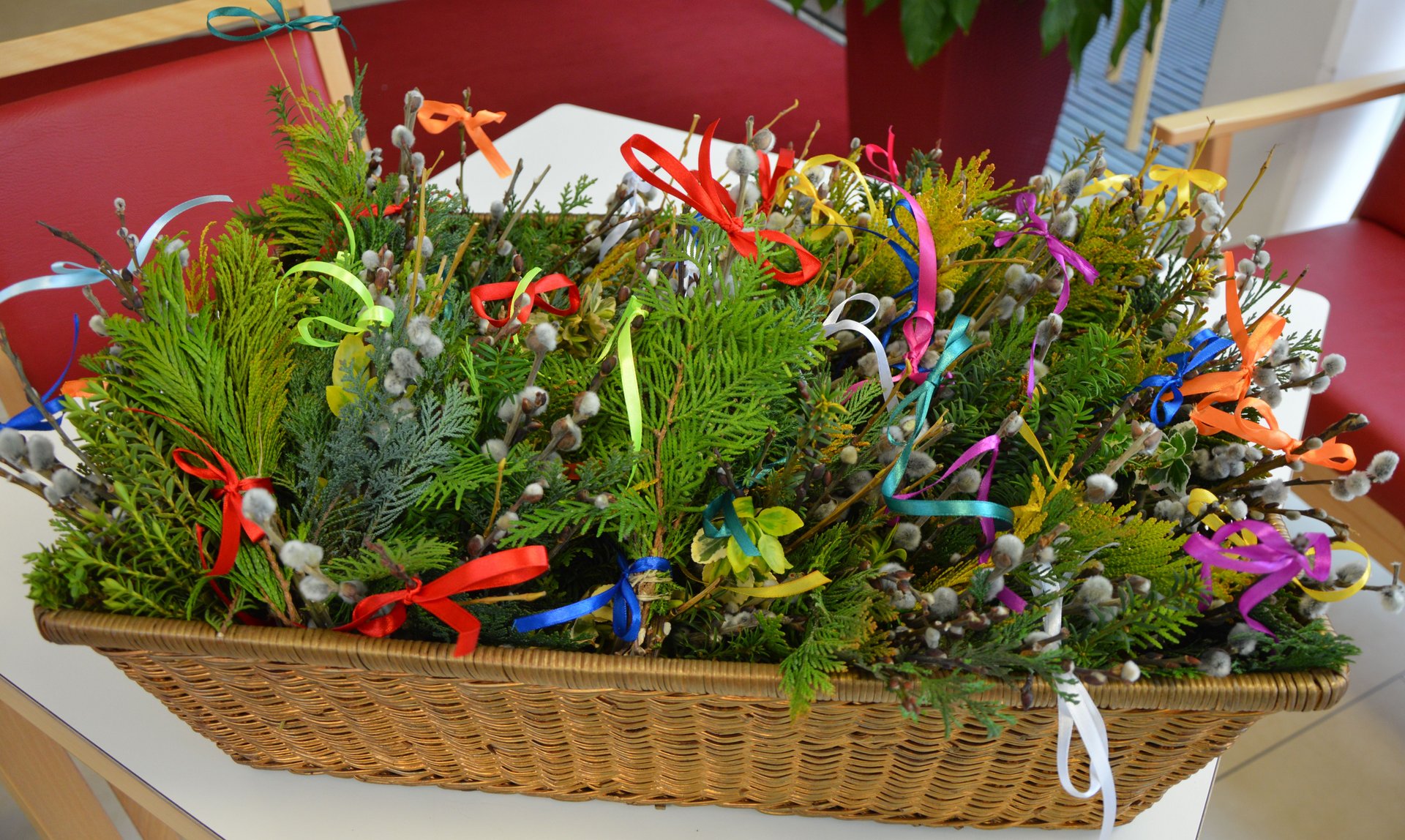 Bewohner und Bewohnerinnen waren mit Begeisterung bei den verschiedenen Osteraktivitäten dabei, zB. Palmbesen binden, Ostergebäck backen, kleine süße Hasen waren zu Besuch, Ostereier färben und der Osterhase war zu Besuch.