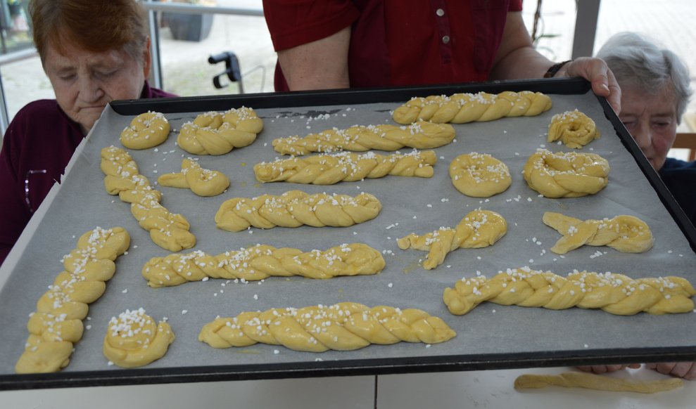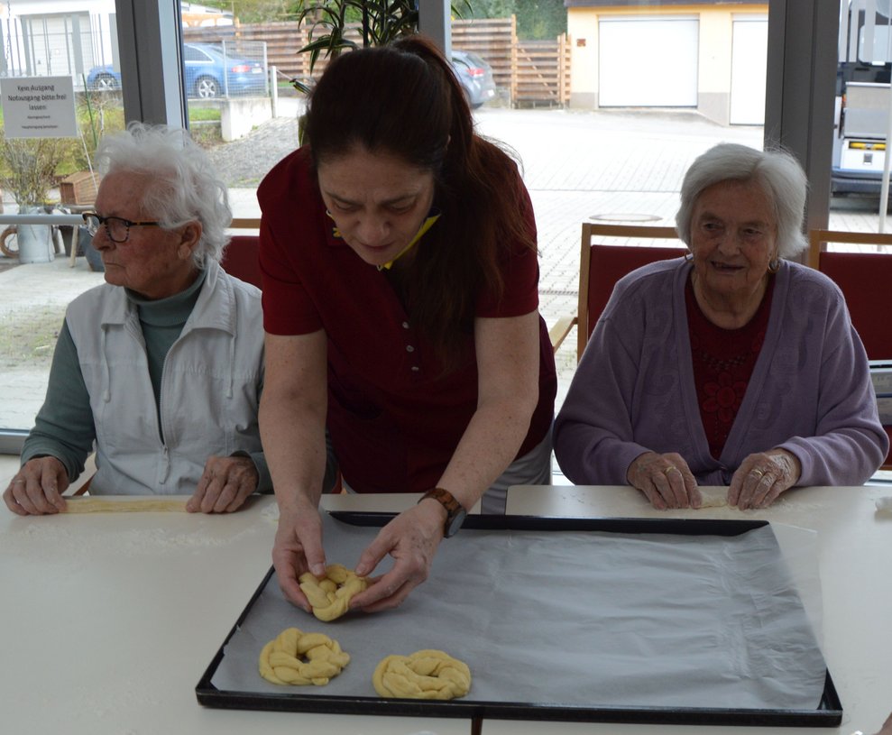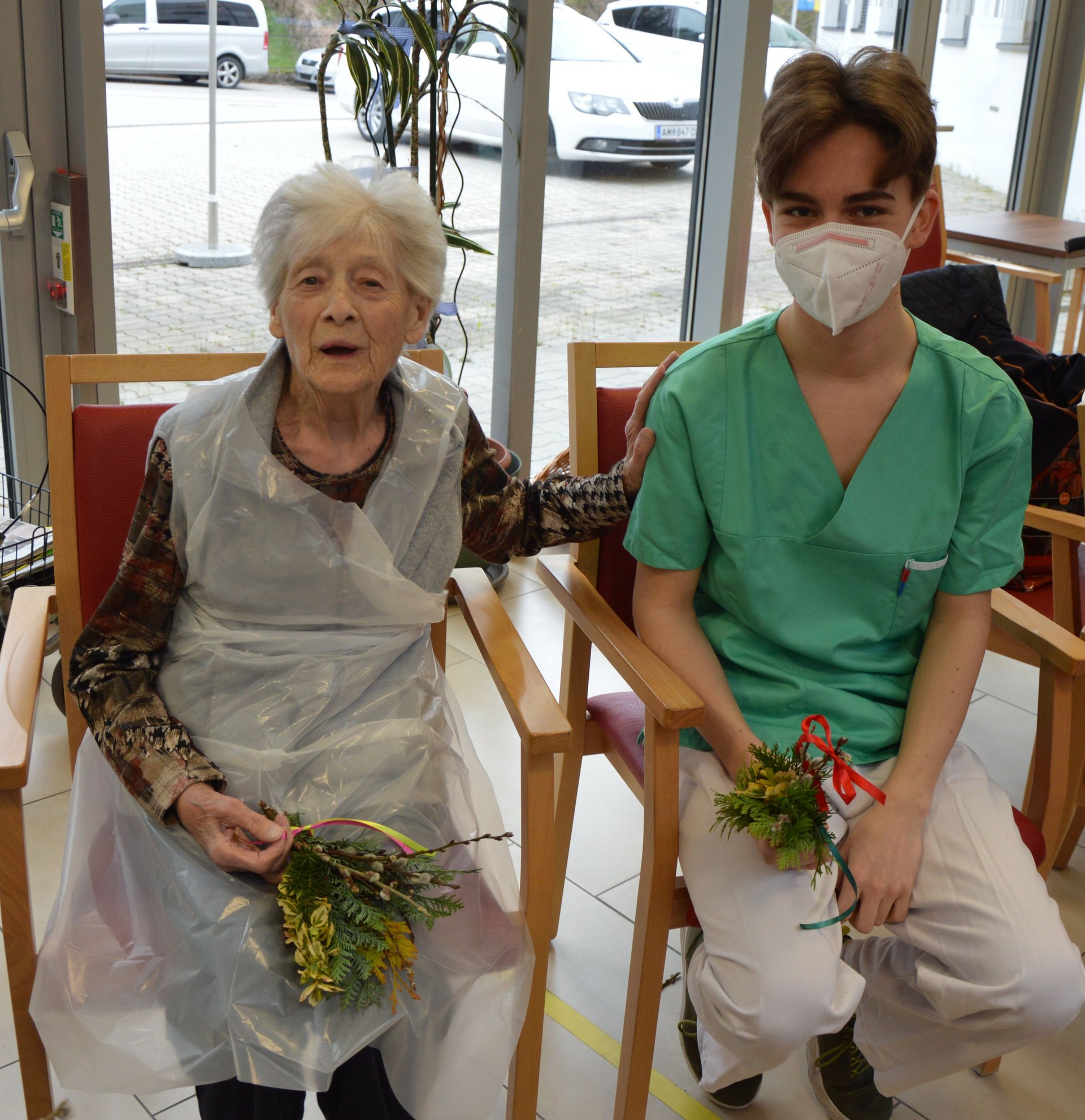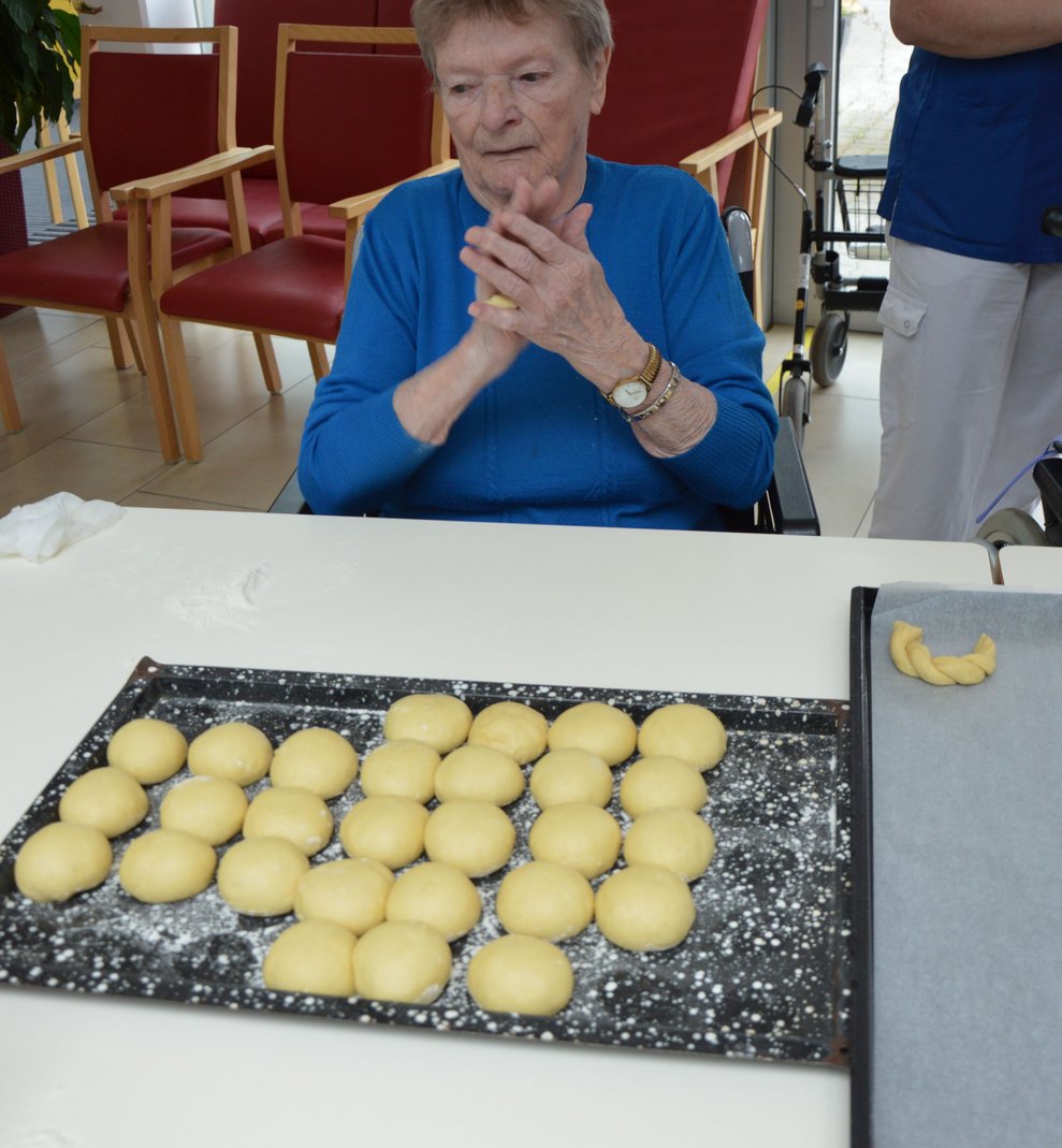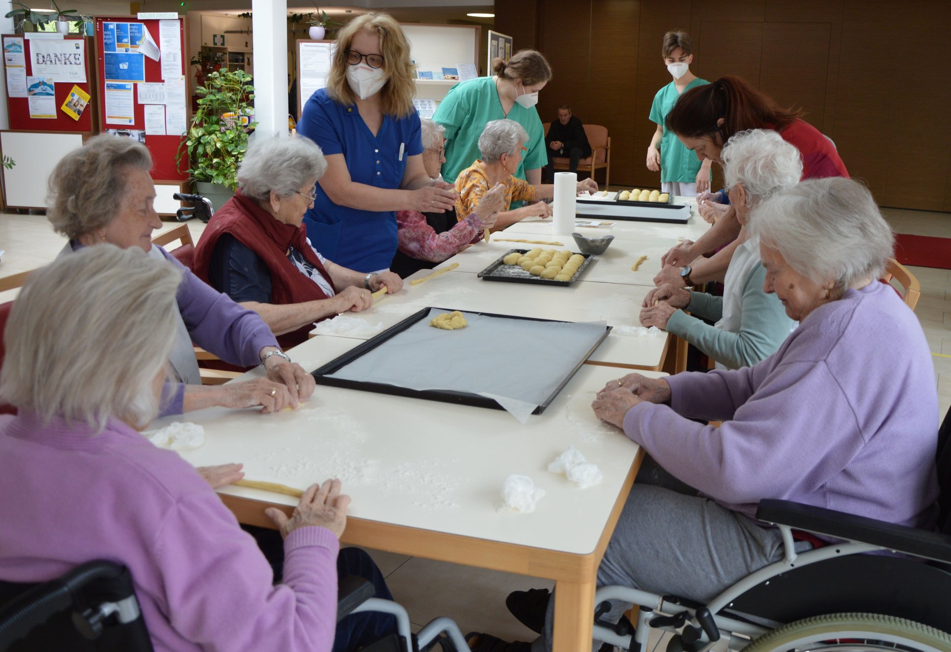 Bewohner und Bewohnerinnen waren mit Begeisterung bei den verschiedenen Osteraktivitäten dabei, zB. Palmbesen binden, Ostergebäck backen, kleine süße Hasen waren zu Besuch, Ostereier färben und der Osterhase war zu Besuch.