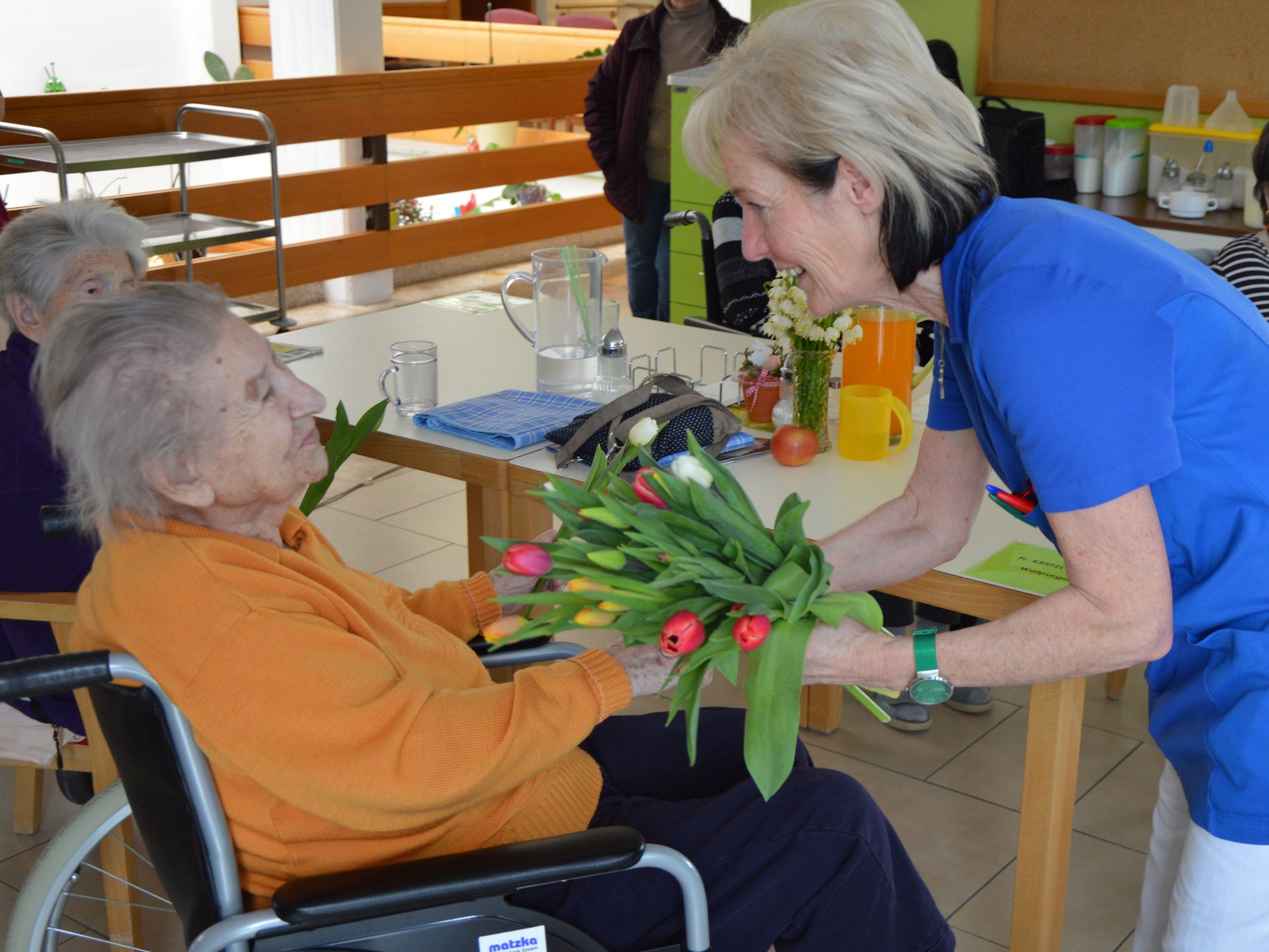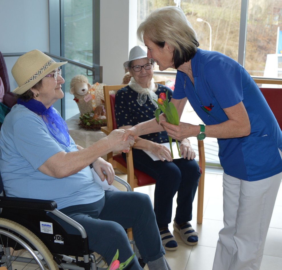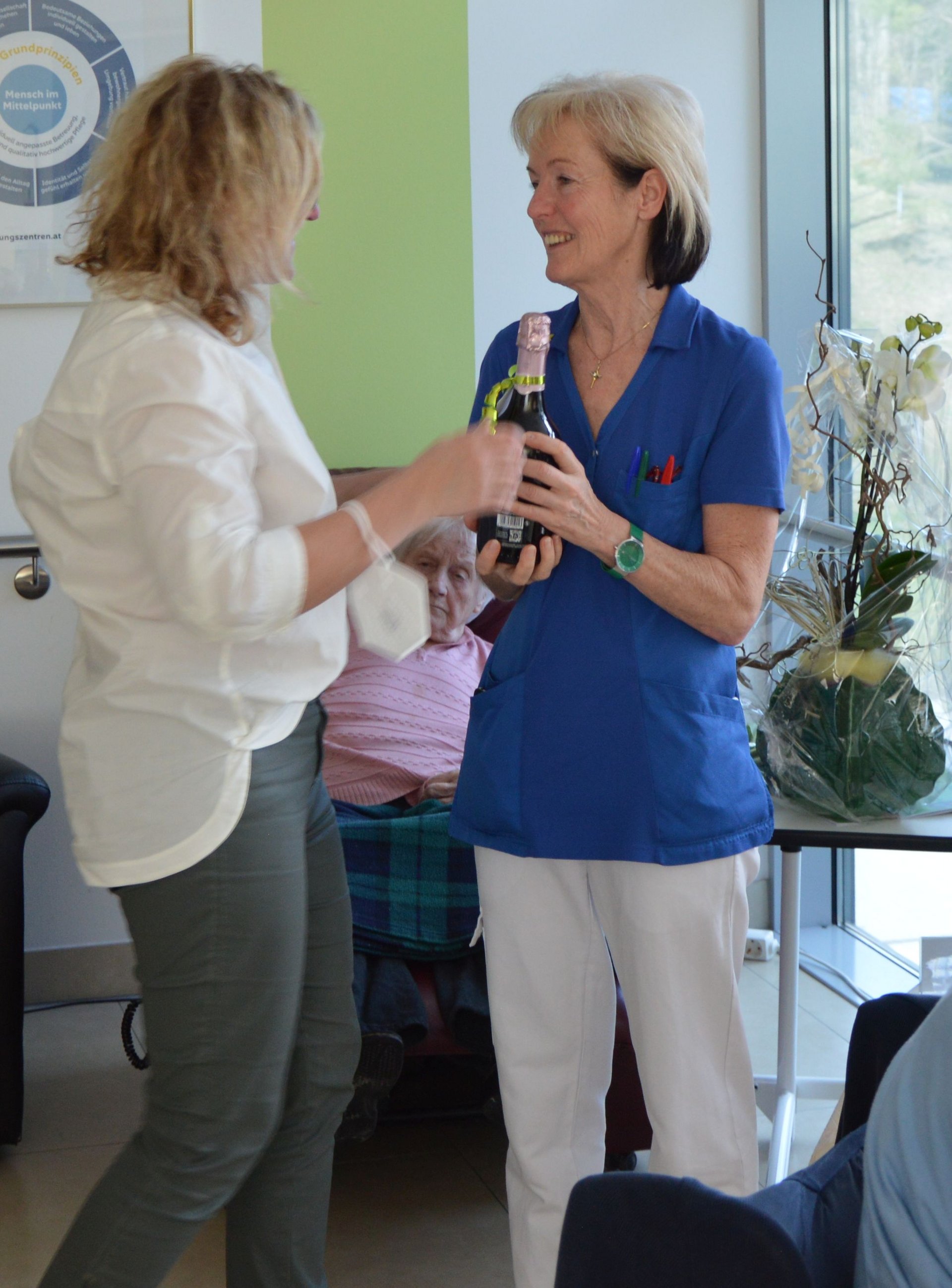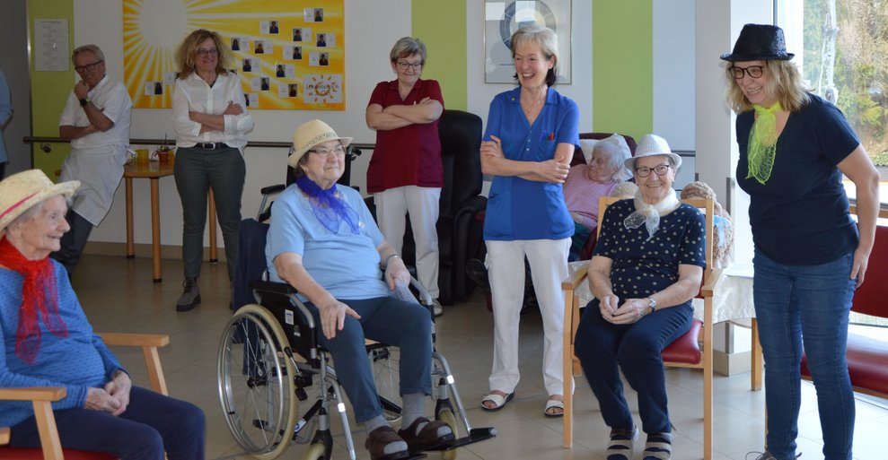 Anlässlich der Pensionierung von PBM Hermine Reithner, wurde im Wohnbereich 2. OG eine kleine Abschiedsfeier gestaltet. Einige Bewohner und Bewohnerinnen führten mit Freude einen einstudierten Sitztanz vor. Mit Gedichten, vorgelesen von Bewohner und Bewohnerinnen, wurde das Programm umrahmt. Wir danken Sr. Hermine für die langjährige Tätigkeit bei uns im Haus und wünschen Ihr für Ihren neuen Lebensabschnitt alles Gute!
