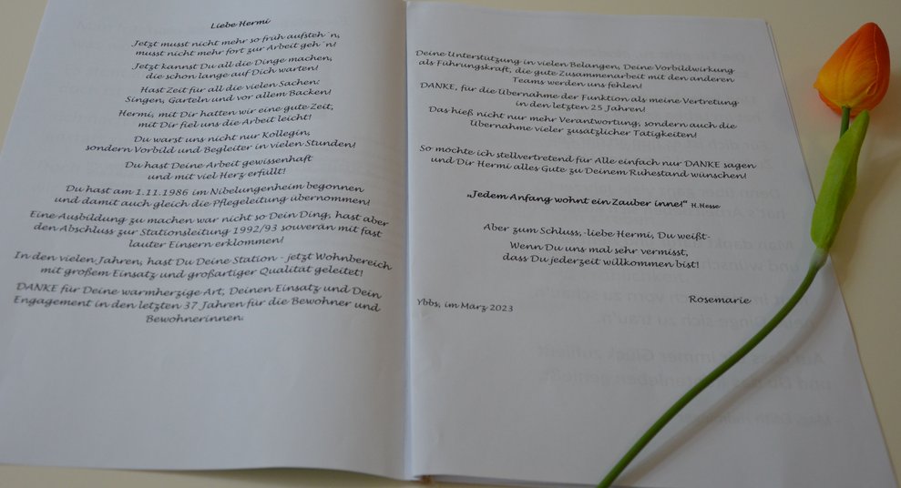 Pensionierungsfeier einer langjährigen Mitarbeiterin