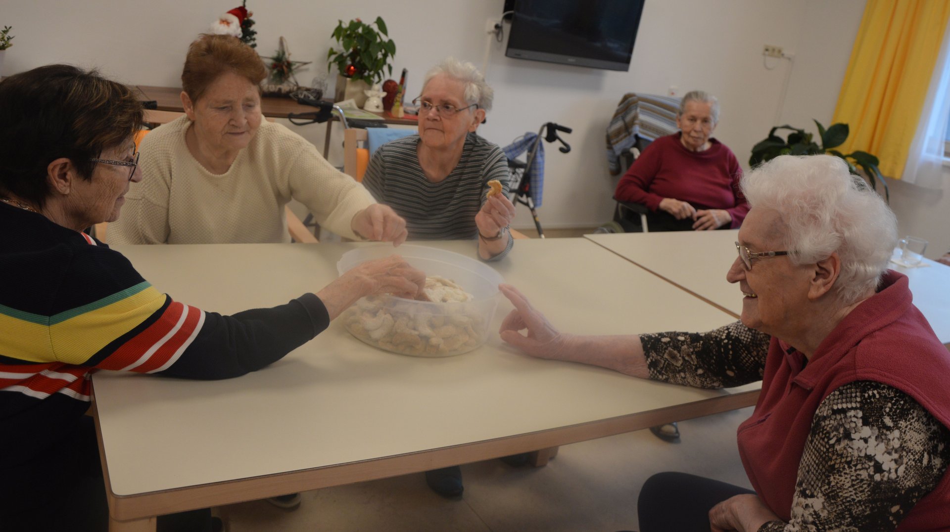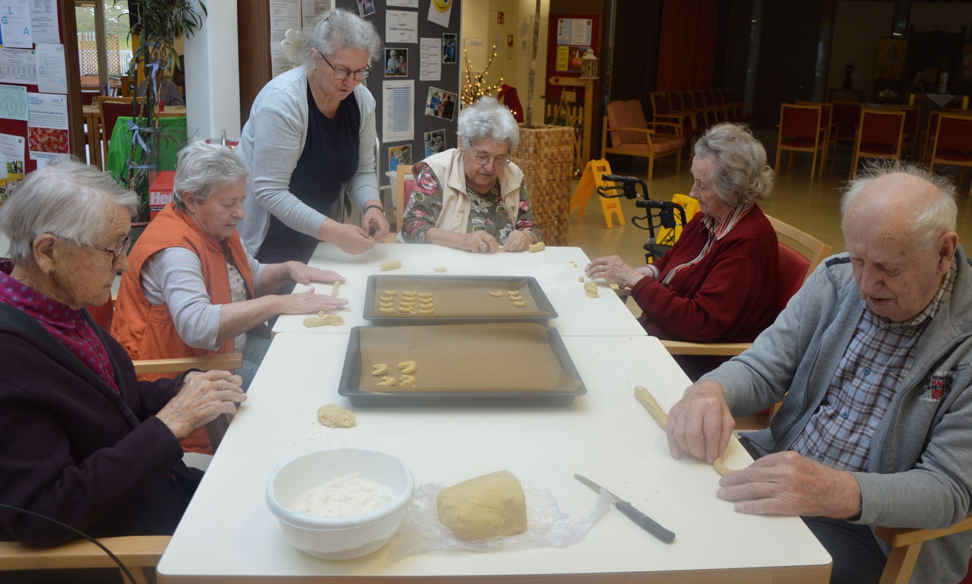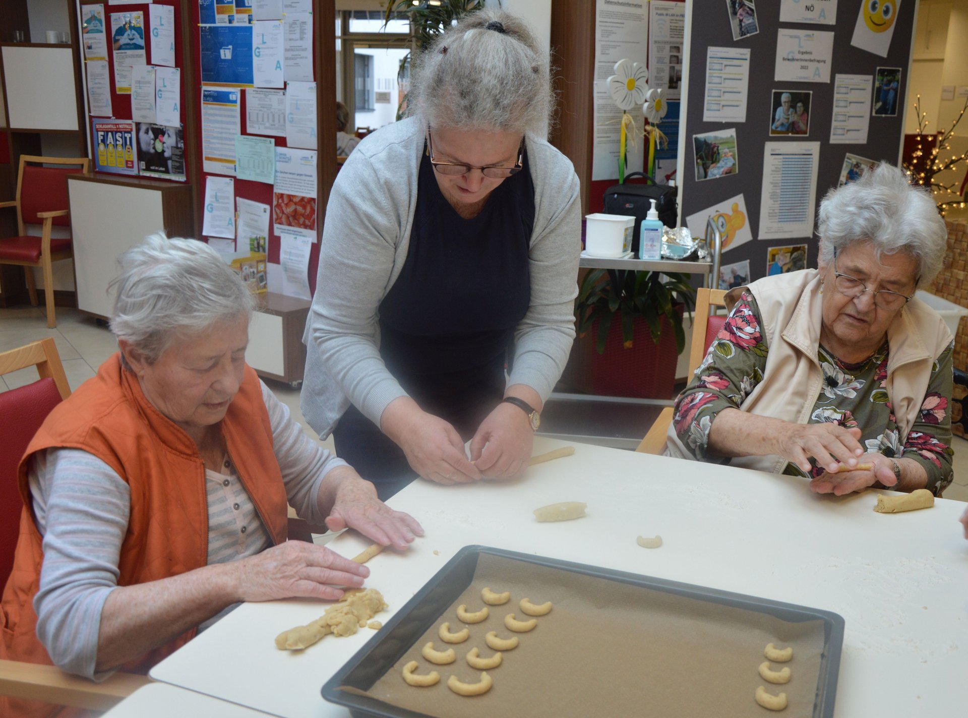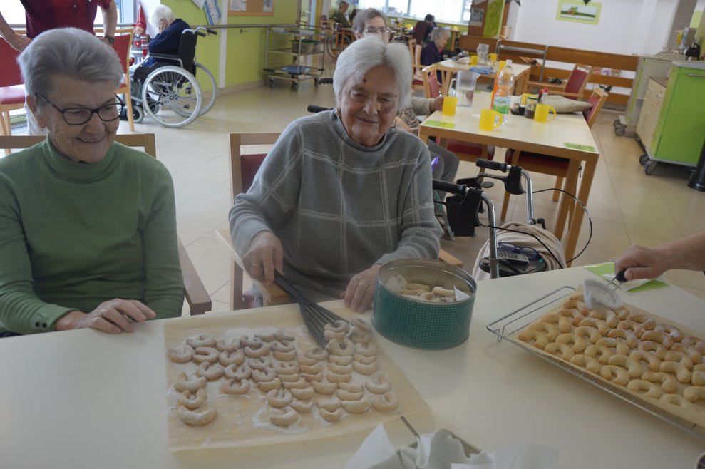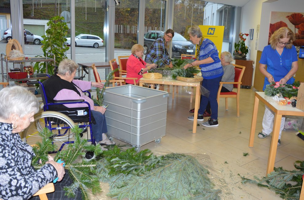 Vor Weihnachten werden verschiedene Bräuche bei uns im Haus gelebt. Wie zum Beispiel: Adventkranz binden, Kekse backen, der Nikolaus kam zu Besuch, besinnliche Adventeinstimmung, Adventsingen mit Kindern, Bewohner*innen Weihnachtsfeier und noch vieles mehr.
