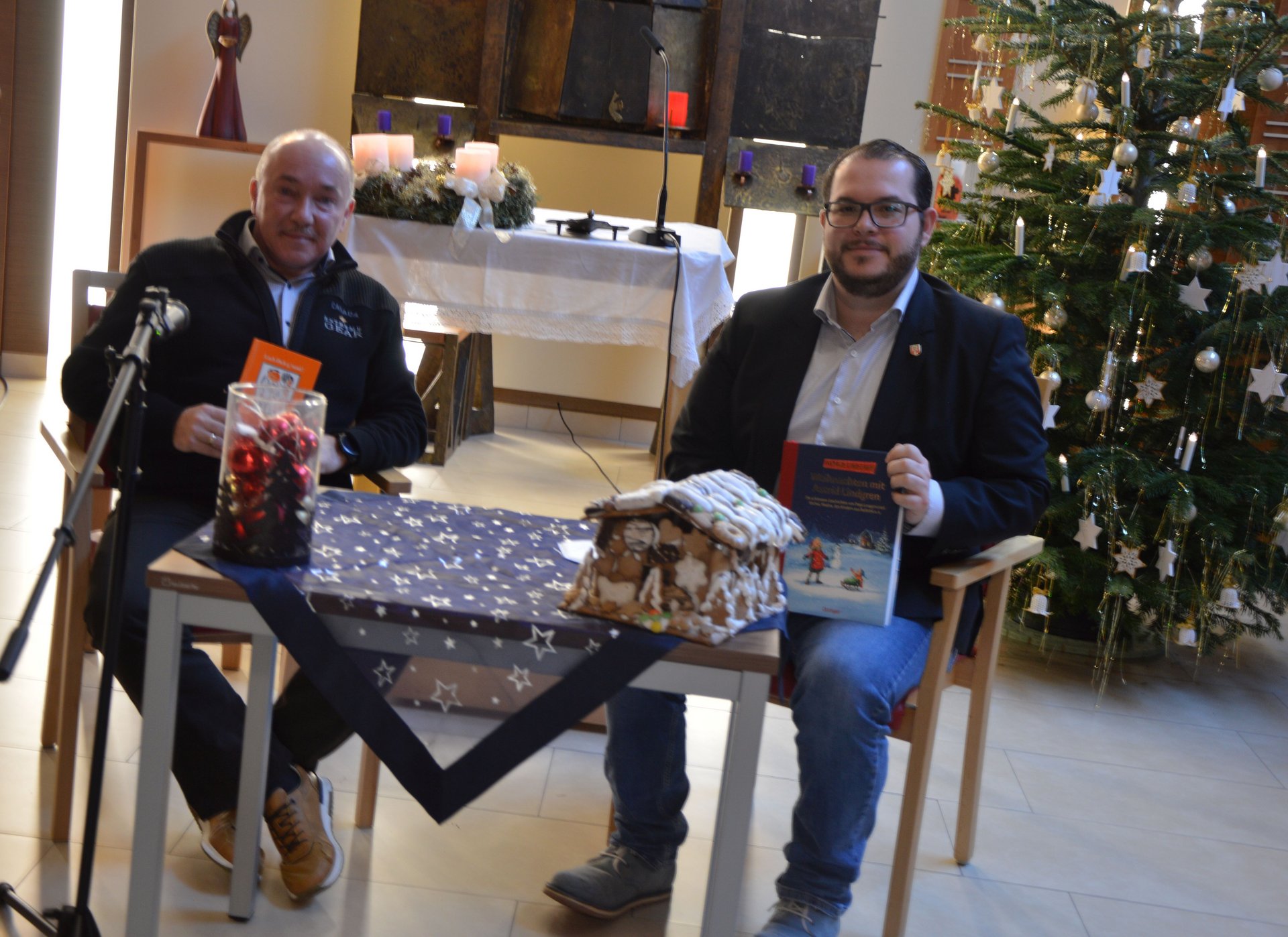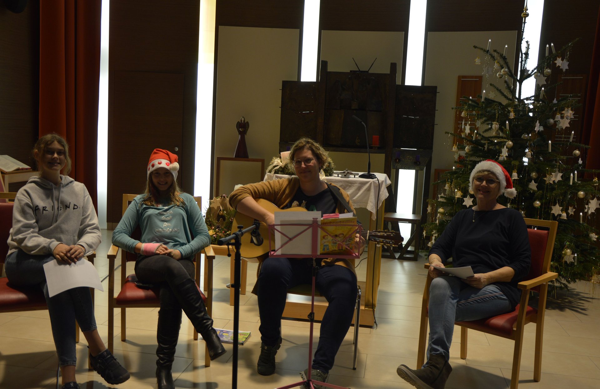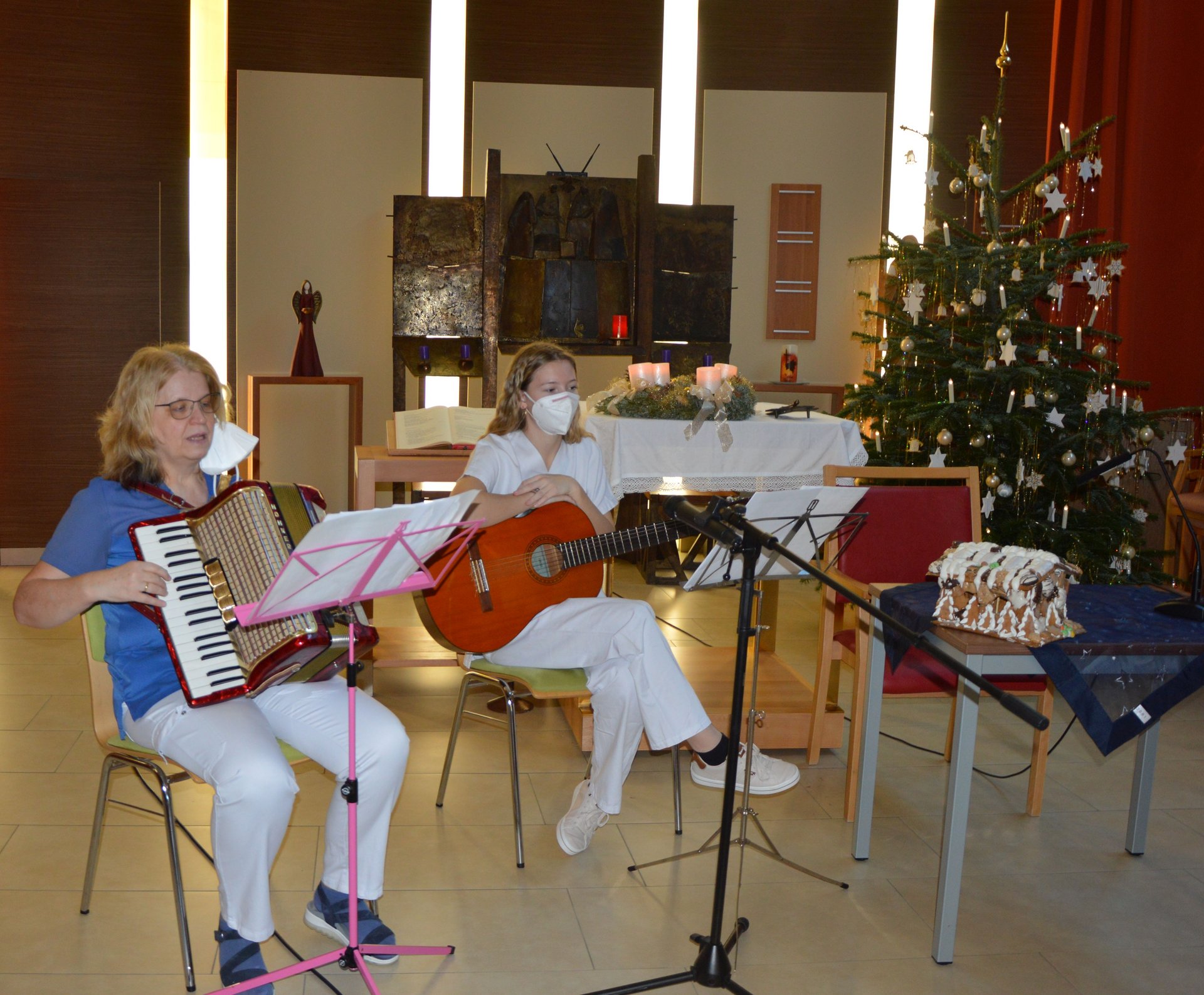 Weihnachtliche Stimmung kam bei unseren Bewohner und Bewohnerinnen mit Gedichten und Geschichten, welche von Frau Direktor Gertrude Bauernfried, LPB Rosemarie Reithner und Dir. Stv. Judith Hofmarcher vorgetragen wurden, auf. Einige weihnachtliche Stücke gab Alltagsbegleiterin Elisabeth Reithner mit ihrem Akkordeon zum Besten. Einige Tage zuvor besuchte uns Vizebürgermeister Dominic Schlatter und Kulturstadtrat Peter Blesky die Gedichte und Geschichten vorlasen. Weiters bekamen wir Besuch von Familie Vogelhuber, die eine Adventstunde für unsere Bewohner und Bewohnerinnen gestalteten. Coronabedingt wurde alles aus der Kapelle, per Videoübertragung, an alle Wohnbereiche gesendet.