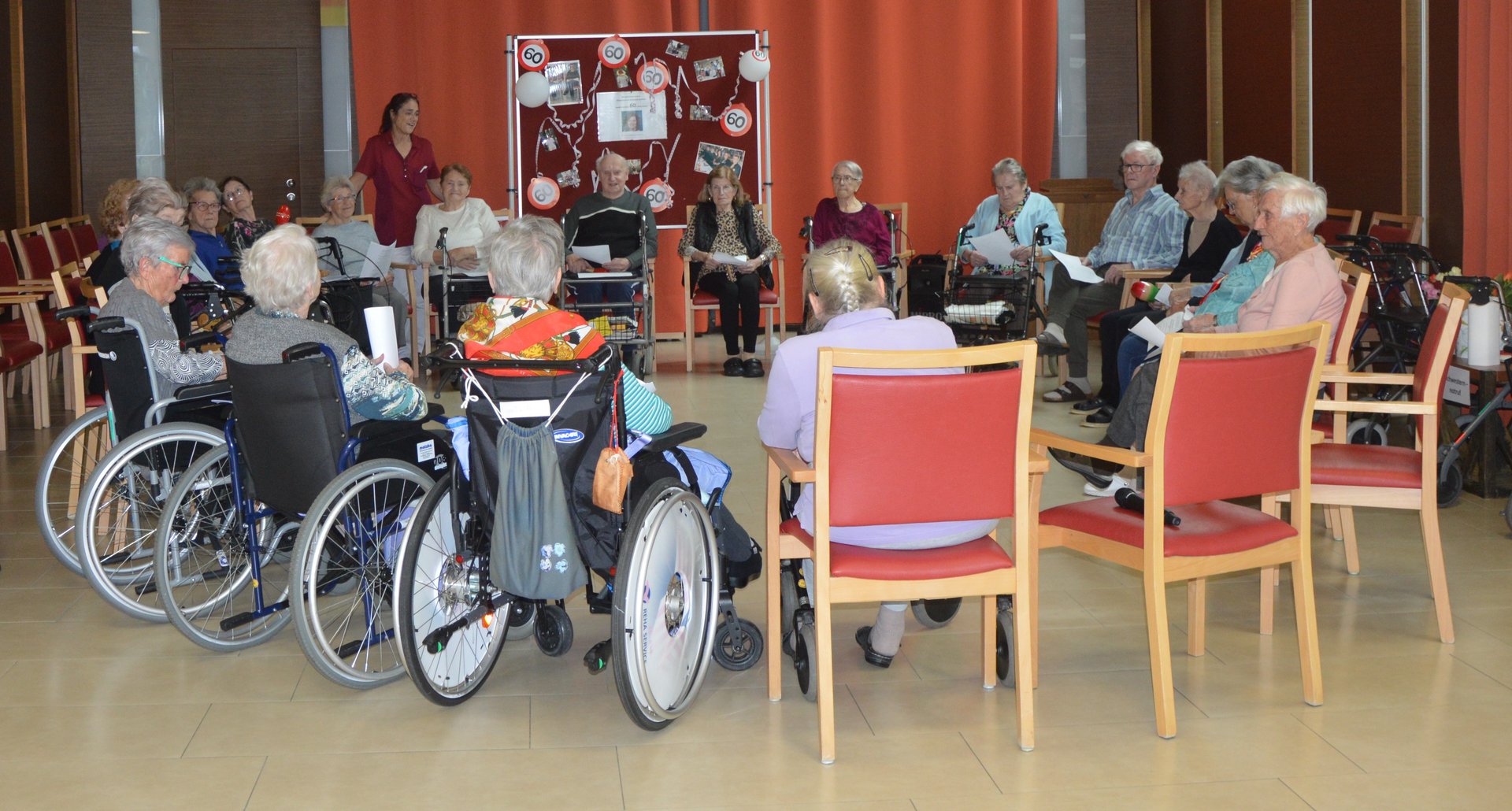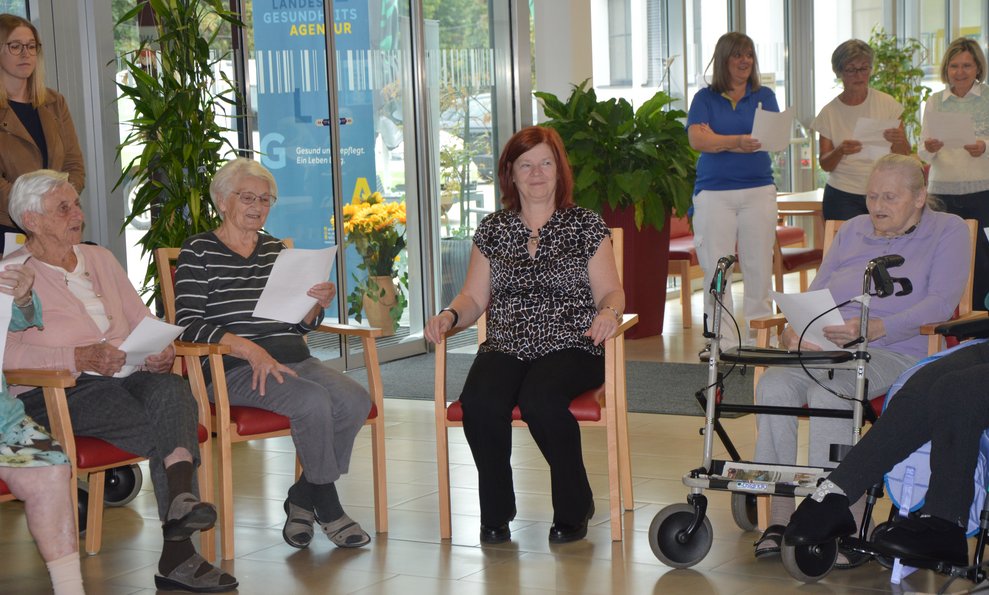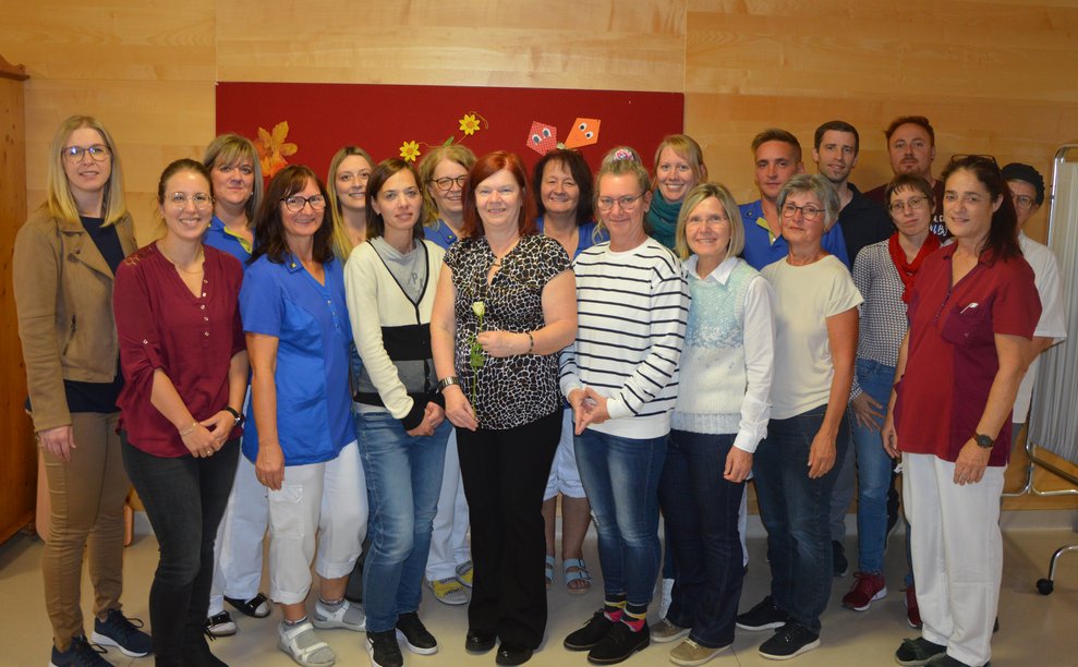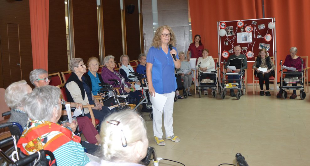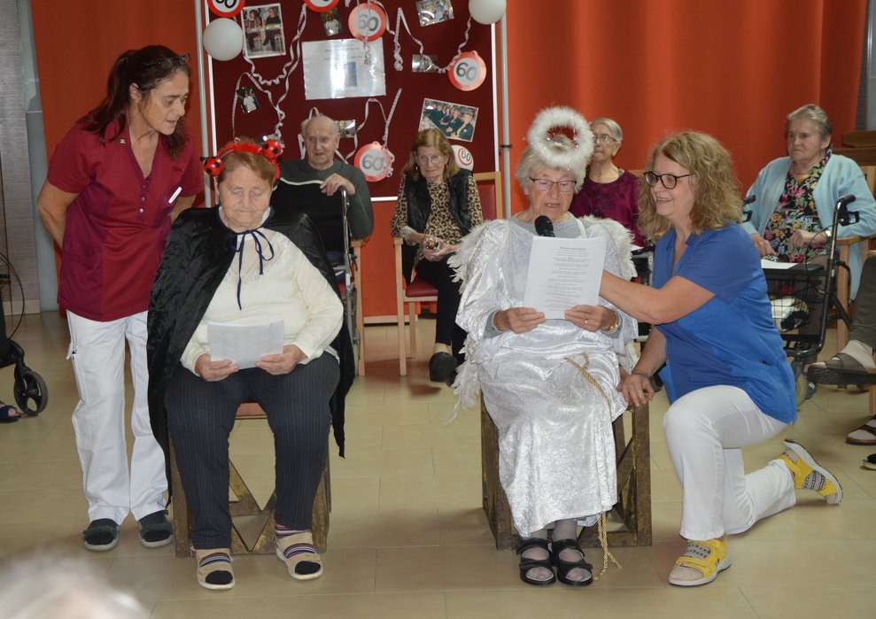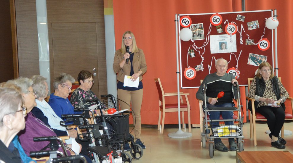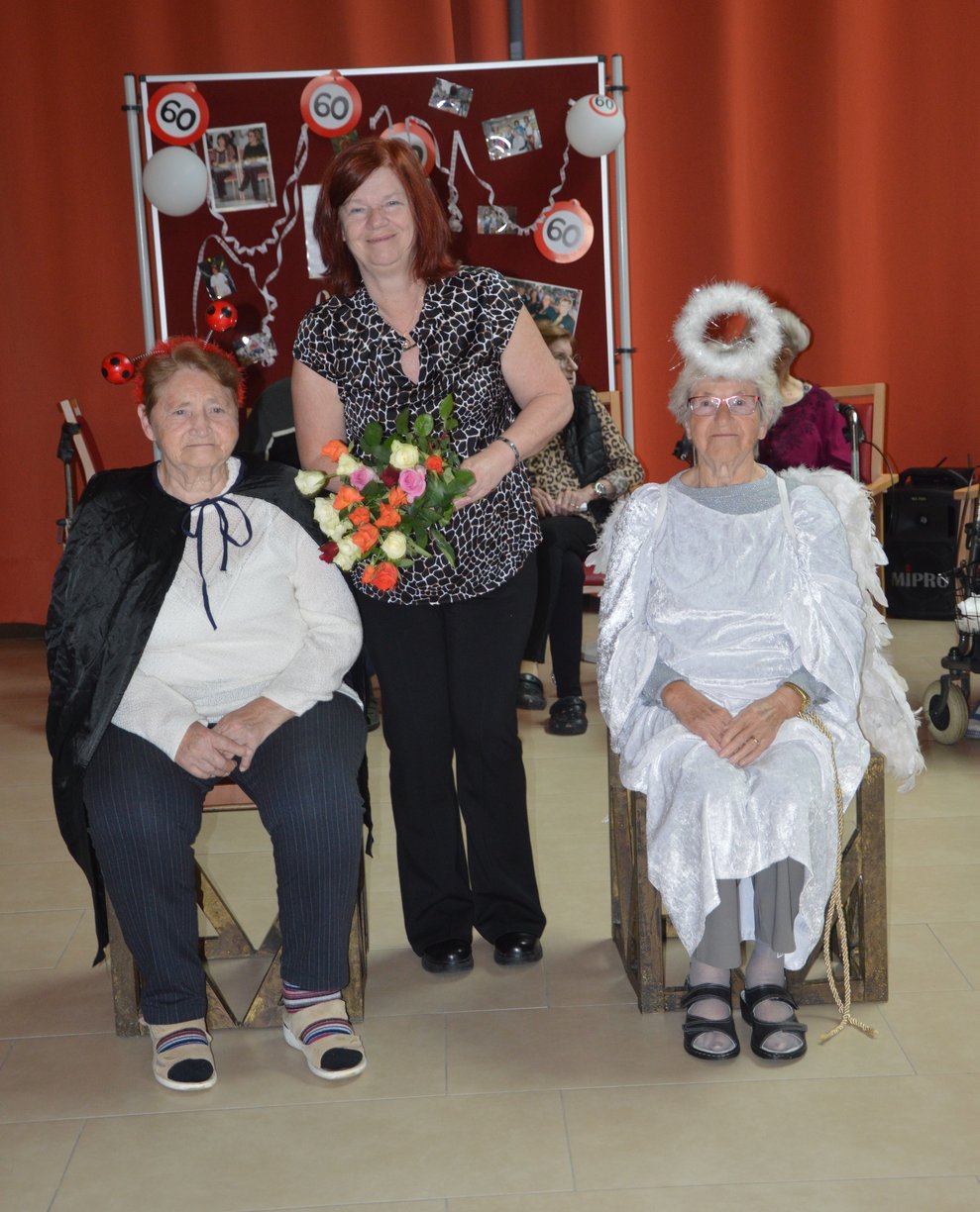 Wir gratulieren unserer Pflegedirektorin Reithner Rosemarie recht herzlich zu ihrem runden Geburtstag! Natürlich wurde dieser Ehrentag gebührend gefeiert. Mit dem altbekannten Lied „Marmor, Stein und Eisen bricht“, welches von kreativen MitarbeiterInnen umgedichtet wurde eröffneten unsere Bewohnerinnen und Bewohner als auch die Mitarbeiterinnen und Mitarbeiter die Feierlichkeiten. Ein lustiger Sketch, gespielt von 2 Bewohnerinnen, welche als „Engerl und Teuferl“ verkleidet waren, folgte. Natürlich gab es auch ein Glaserl´ Sekt und leckere Torten. Liebe Rosemarie, danke für deinen unermüdlichen Einsatz im PBZ Ybbs und weiterhin alles Gute, Glück und Gesundheit!